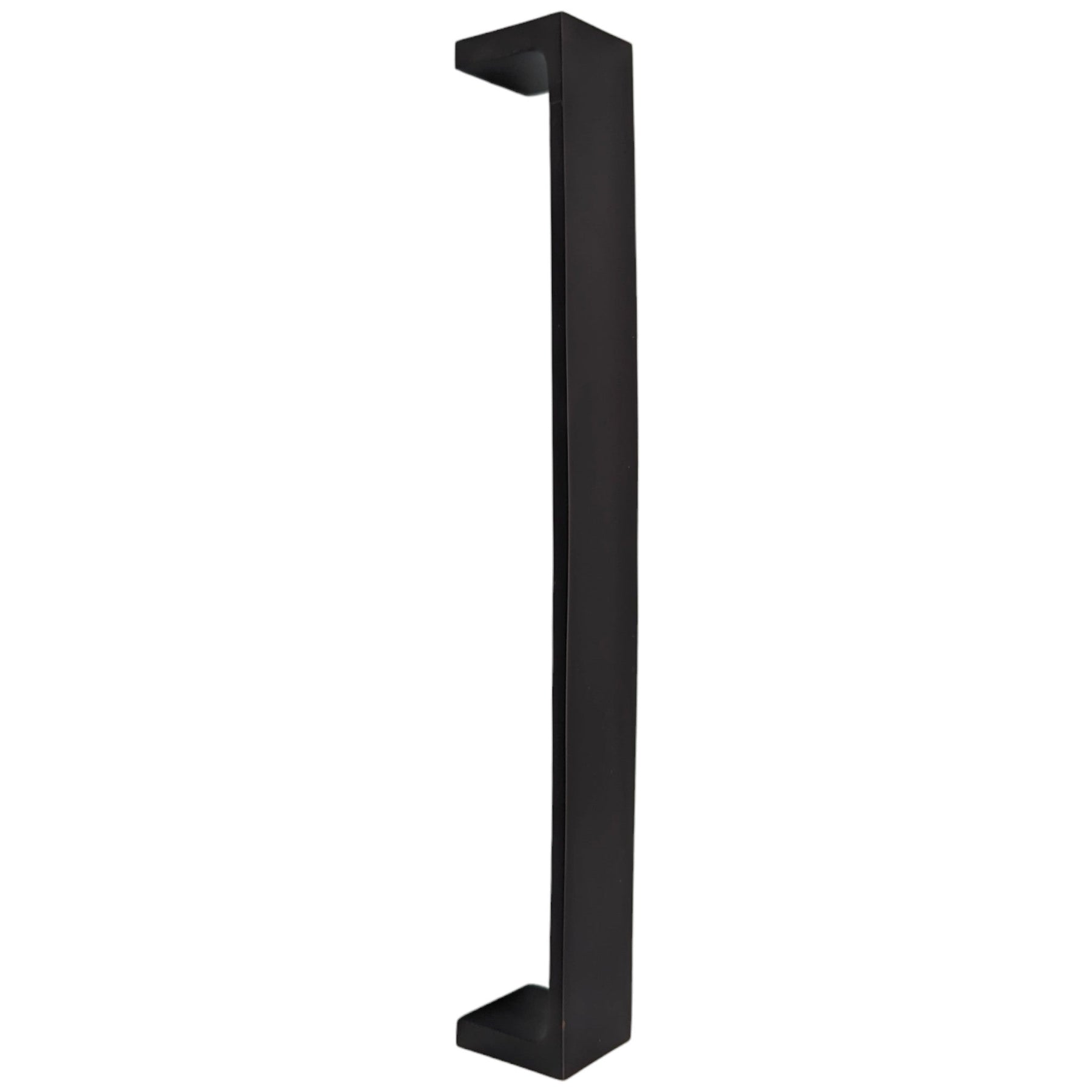 This oversize Langford pull has an overall measurement of 12 1/2 inches with a center to center measurement of 12 1/4 inches. Crafted from solid brass and hand finished, each pull in our collection weighs approximately 1.95 lbs, ensuring a tangible sense of quality and meticulous craftsmanship. Each pull comes with 2 2.5 inch bolts with removable acorn caps.