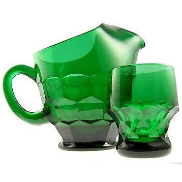 - Glass Water Pitcher & Tumbler Set: Hunter Green Georgia Pattern Pitcher & Four Tumblers
