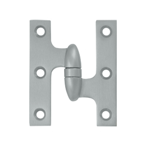 3 Inch x 2 1/2 Inch Solid Brass Olive Knuckle Hinge (Brushed Chrome Finish) - This hinge measures 3 inches tall by 2 1/2 inches wide and is right-handed. The hinge comes complete with the mounting hardware.