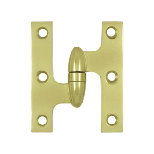 3 Inch x 2 1/2 Inch Solid Brass Olive Knuckle Hinge (Polished Brass Finish) - This hinge measures 3 inches tall by 2 1/2 inches wide and is left-handed. The hinge comes complete with the mounting hardware.