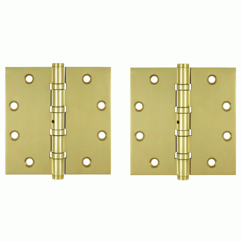 4 1/2 Inch X 4 1/2 Inch Solid Brass Non-Removable Pin Square Hinge (Polished Brass Finish)