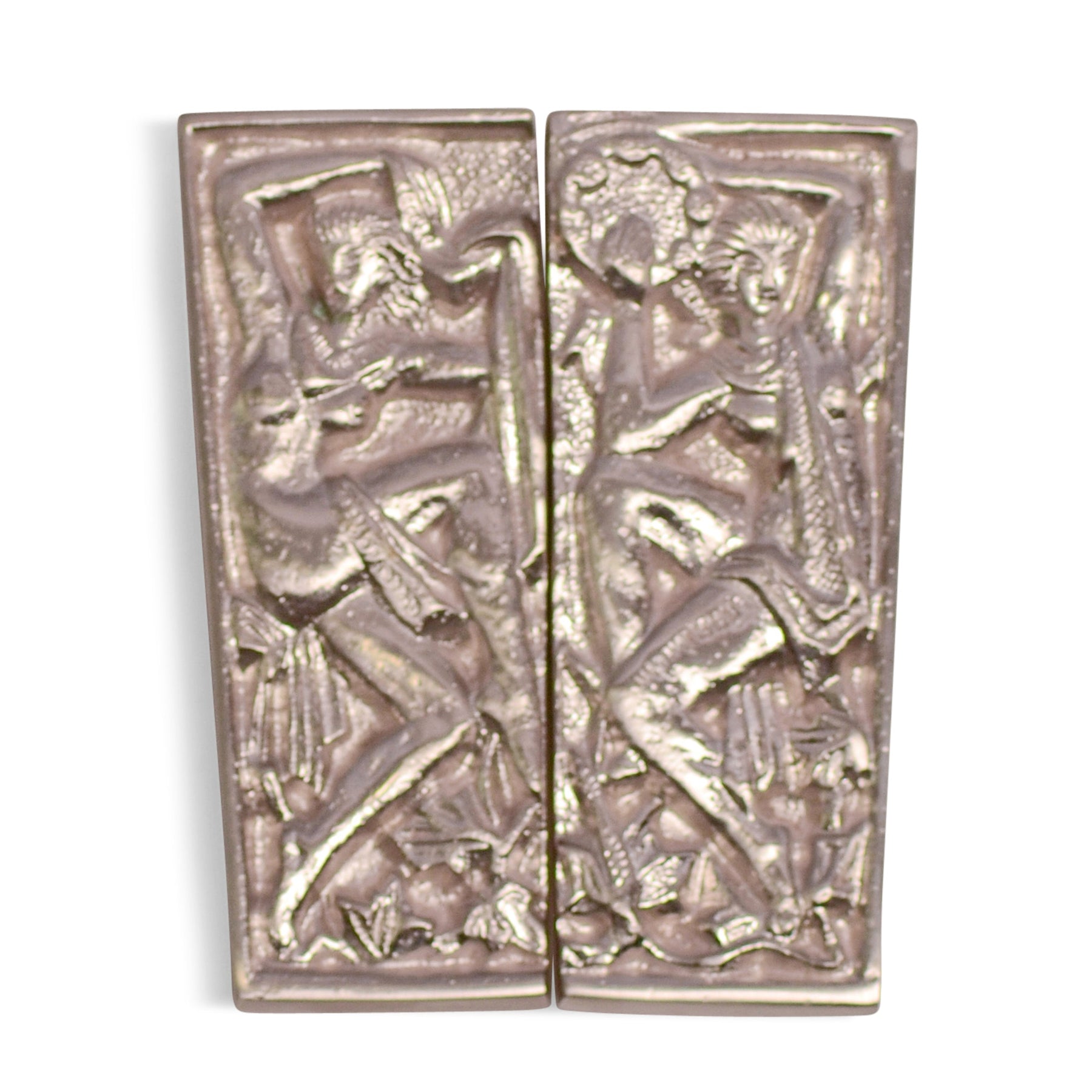 4 3/8 Inch Overall Solid Brass Grecian Dancing Ladies Cabinet Pull Set (Satin Nickel Finish)