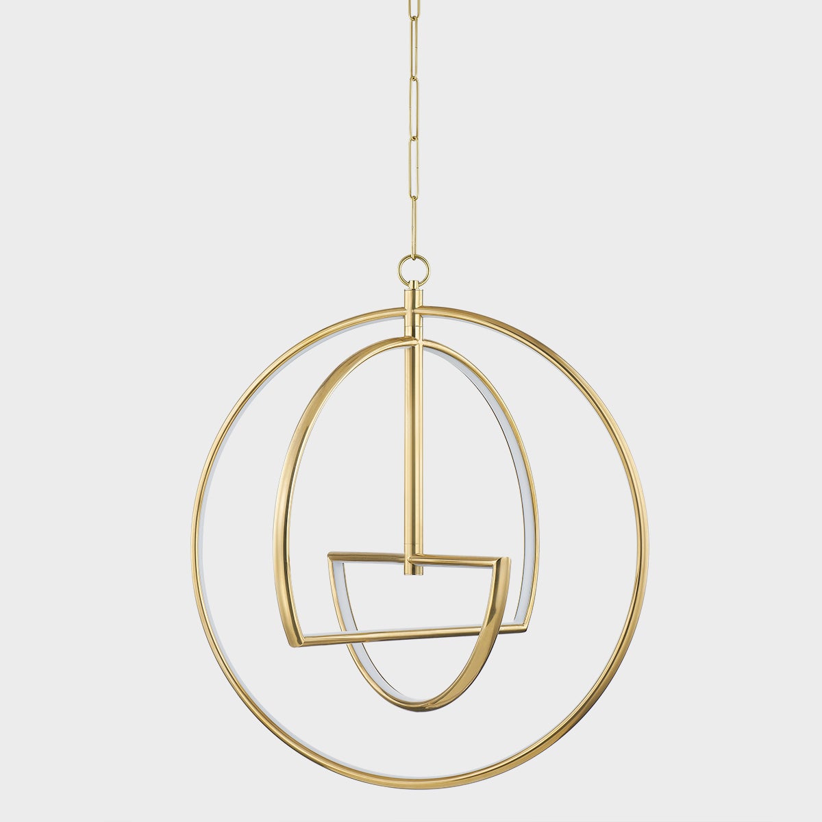 The Welland Pendant Light by Hudson Valley Lighting is a sleek and contemporary choice for illumination, featuring a robust design with three integrated LED lamps that deliver a total wattage of 39. This fixture boasts a diameter of 28.00 inches and a height of 31.50 inches, providing ample lighting for various spaces. With a color temperature of 2700K and an impressive lumens output of 1125, it ensures warm and inviting ambiance. The integrated LED socket type enhances energy efficiency while achieving a high Color Rendering Index (CRI) of 90. This pendant light is field serviceable, making maintenance hassle-free, and is available in a stylish Aged Brass finish.