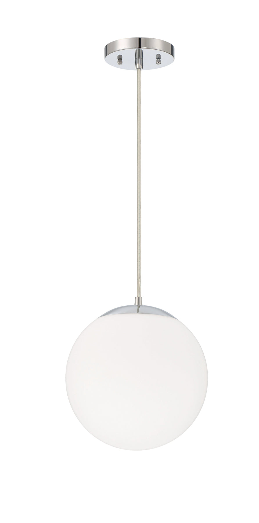 Gaze 1 Light 10" Pendant in Chrome (White Glass)