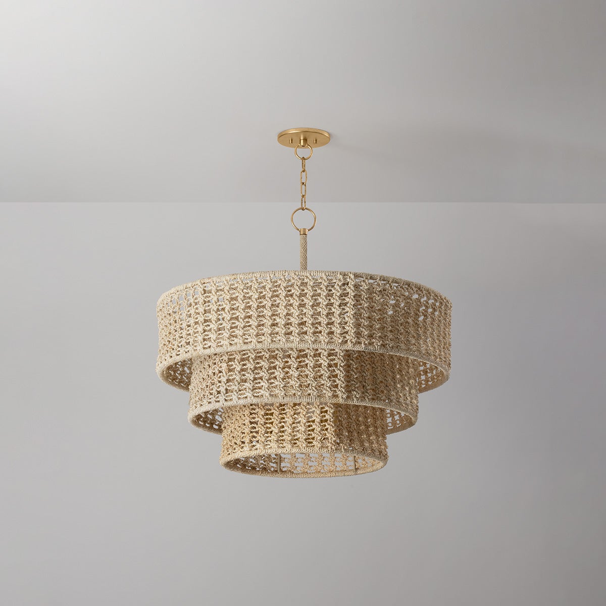 The Yorkhill chandelier by Hudson Valley Lighting is a stunning addition for those looking to enhance their space with elegant lighting. This fixture features a unique diameter of 32.00 inches and a height of 29.50 inches, accommodating up to six E12 candelabra base bulbs (not included) with a maximum wattage of 8.00W each. It showcases a sophisticated Abaca shade, available in a delightful Vintage Gold Leaf (VGL) finish. With an electrical rating of UL Damp, this chandelier is ideal for a variety of indoor settings where moisture may be present.