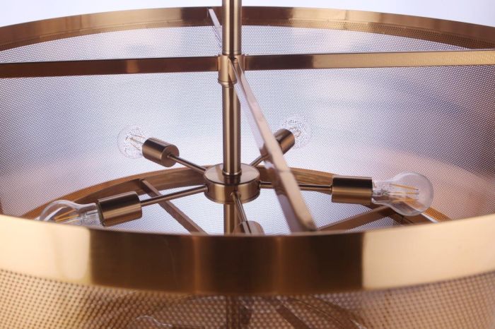 The Mesh Pendant in Satin Brass is a striking addition to any space, offering both style and functionality. This stunning fixture requires twelve E26 medium base bulbs (not included), each with a maximum wattage of 40W. Standing 53 inches tall with a sleek flat black glass shade, it features an adjustable 6FT chain for customizable height. Rated for damp locations, it is ideal for kitchens or entryways, adding a sculptural touch to your décor while providing ample illumination.