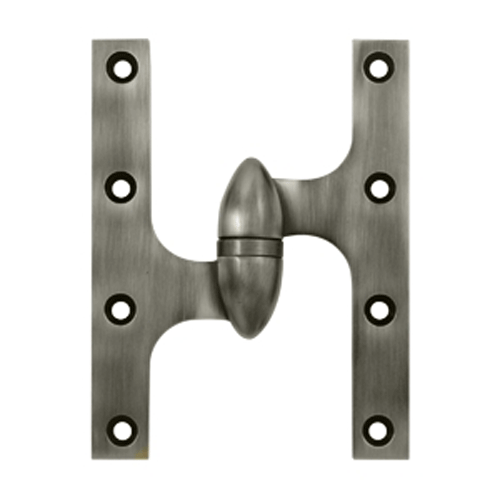 6 Inch x 4 1/2 Inch Solid Brass Olive Knuckle Hinge (Antique Nickel Finish) - This hinge measures 6 inches tall by 4 1/2 inches wide and is left-handed. The hinge comes complete with the mounting hardware.