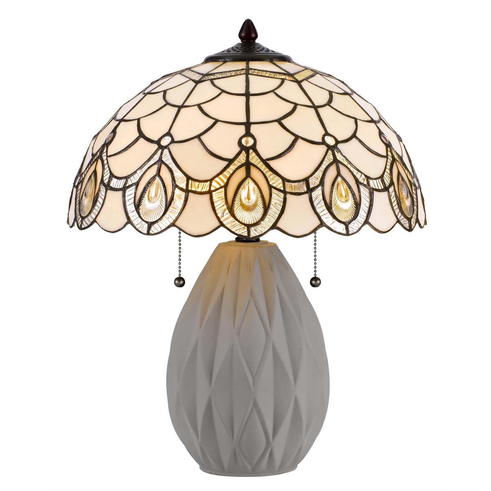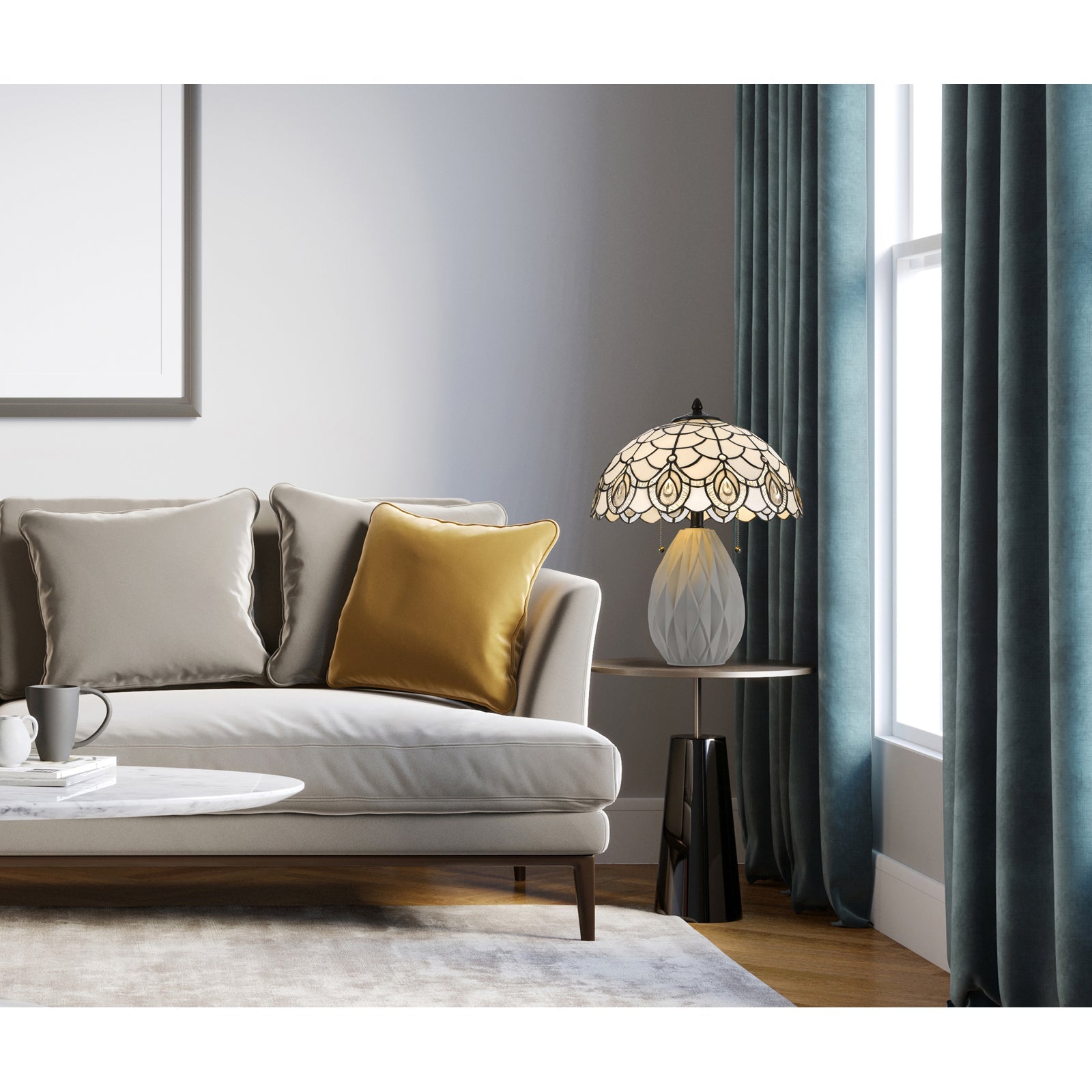 60W X 2 TIFFANY TABLE LAMP WITH PULL CHAIN SWITCH AND RESIN LAMP BODY