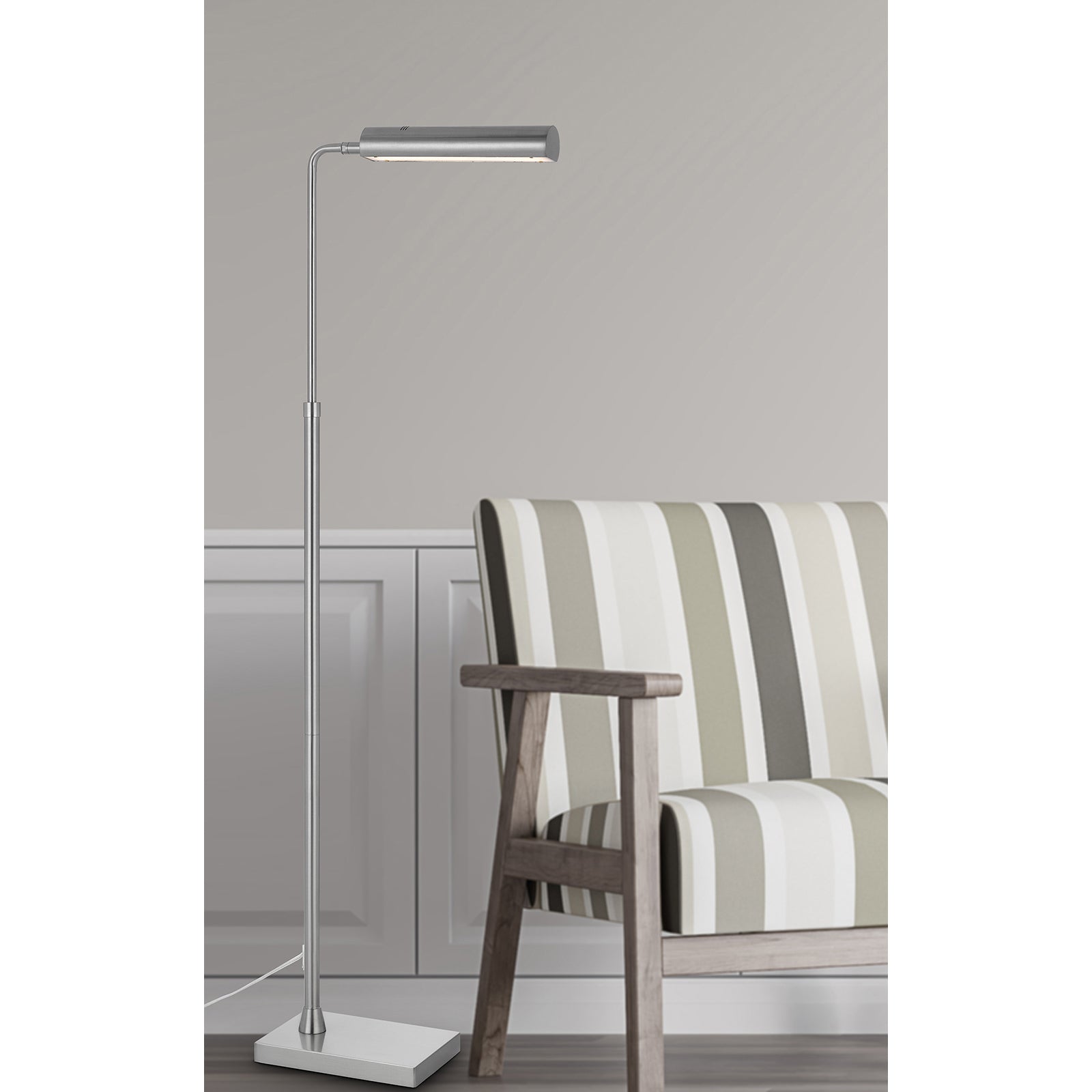 The Delray 17W integrated LED floor lamp (Product No. BO-3133FL-BS) is a stunning addition to any living space, combining functionality with elegance. It features durable metal construction and a 3000K color temperature for warm illumination. This non-dimmable lamp boasts an adjustable height ranging from 44 to 58 inches, allowing for optimal light control. With a weighted base for enhanced stability, it ships in one carton and requires little to no assembly. The rocker switch located on the lamp's head adds convenience, making this lamp a versatile option for compact areas.