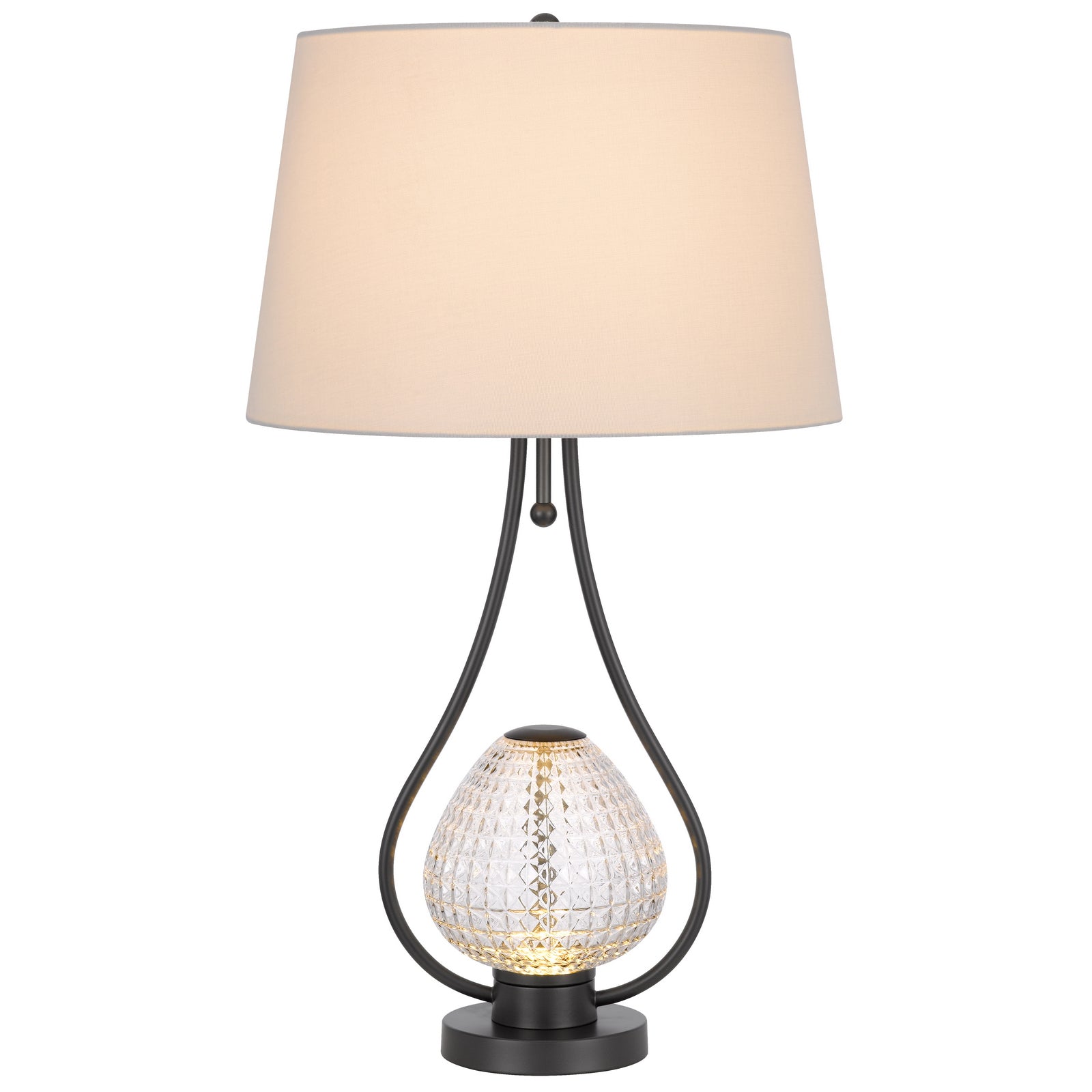 The Forssa 100W 3-way table lamp (Product No. BO-3136TB) is an exquisite addition to your living space, featuring a stunning teardrop style design with a clear diamond pattern. This lamp is constructed with durable glass and metal, ensuring longevity and stability with its weighted base. It operates via a rotary switch located on the socket, allowing for easy adjustment of light levels. Additionally, this lamp includes a functional 2W LED night light for added convenience. The hardback fabric shade complements its elegant design, making it suitable for various settings. The lamp measures 18.30 inches in width, 18.30 inches in length, and 22.80 inches in height, accommodating one E26 base bulb with a maximum wattage of 100W. With a minor assembly required, it arrives packaged securely in one carton and comes with a one-year warranty for peace of mind.