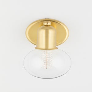 The Bryce Wall Sconce by Mitzi is a sleek and elegant lighting fixture that adds a touch of sophistication to any space. Standing 9.00 inches tall with a width of 5.00 inches and a 6.00-inch extension, this sconce is designed to accommodate one E26 medium base bulb (not included), with a maximum wattage of 60W. It features stunning finish options in Aged Brass (AGB) or Polished Nickel (PN) that can enhance your decor. With a UL Damp rating, the Bryce is ideal for installation in areas prone to moisture, such as bathrooms, making it both functional and stylish.