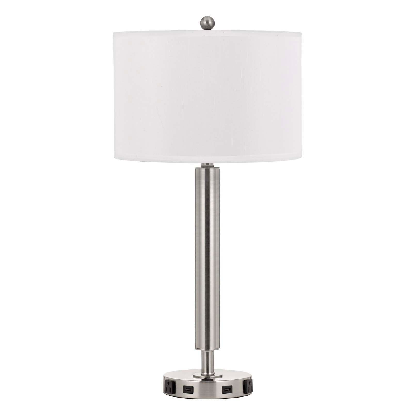 The LA-2004NS-5R-BS 100W Metal Night Stand Lamp combines durability and functionality in a sleek brushed steel finish. Standing at 30 inches tall, this lamp features an on/off rocker base switch for easy operation. It is equipped with two USB ports and two power outlets, making it perfect for charging devices while providing additional power source options. This lamp requires one E26 base bulb with a maximum wattage of 100W (not included) and ships in one carton, ensuring a convenient purchase. With a one-year warranty against defects, this lamp is a reliable choice for any bedroom or living space.