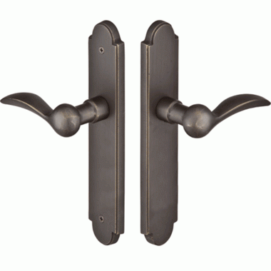 Solid Brass Arched Style Dummy Pair Multi Point Lock Trim (Medium Bronze Finish) - This carefully crafted multi point lock trim set features a smooth medium bronze coating. Measures 2 inches wide by 10 inches tall. Sold as a complete set, which includes plates, handles and cylinder. Multi point mortise lock box is not included. Trims only.[/description]