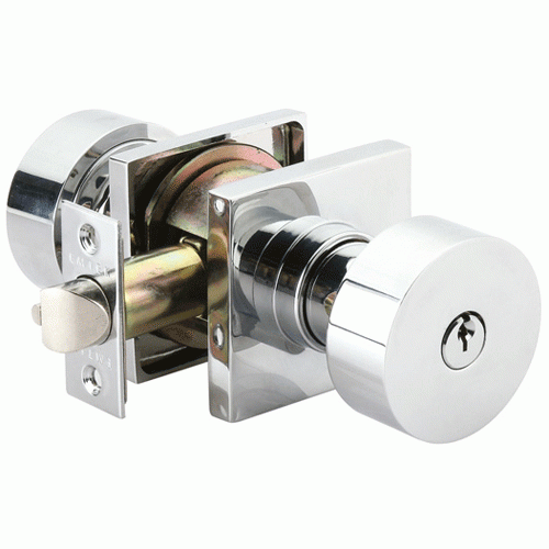 This door knob is constructed from solid brass and measures 2 1/4 inches overall with a 2 11/16 inch projection. Thumb turn locking mechanism on adjoining knob. The finish is shown in Polished Chrome and it is also available in a variety of other finishes. Includes adjustable latch (2 3/8 inches and 2 3/4 inches backsets), strikeplate, two levers and two door rosettes. This set is made for modern doors and it fits any door thickness between 1 1/4 inch to 1 7/8 inches thick. Key-In knobs are larger than double dummy and non-locking knobs to accommodate the lock. This door lever set comes complete with mounting hardware. The average lead time for this knob is approximately 3 to 5 business days.