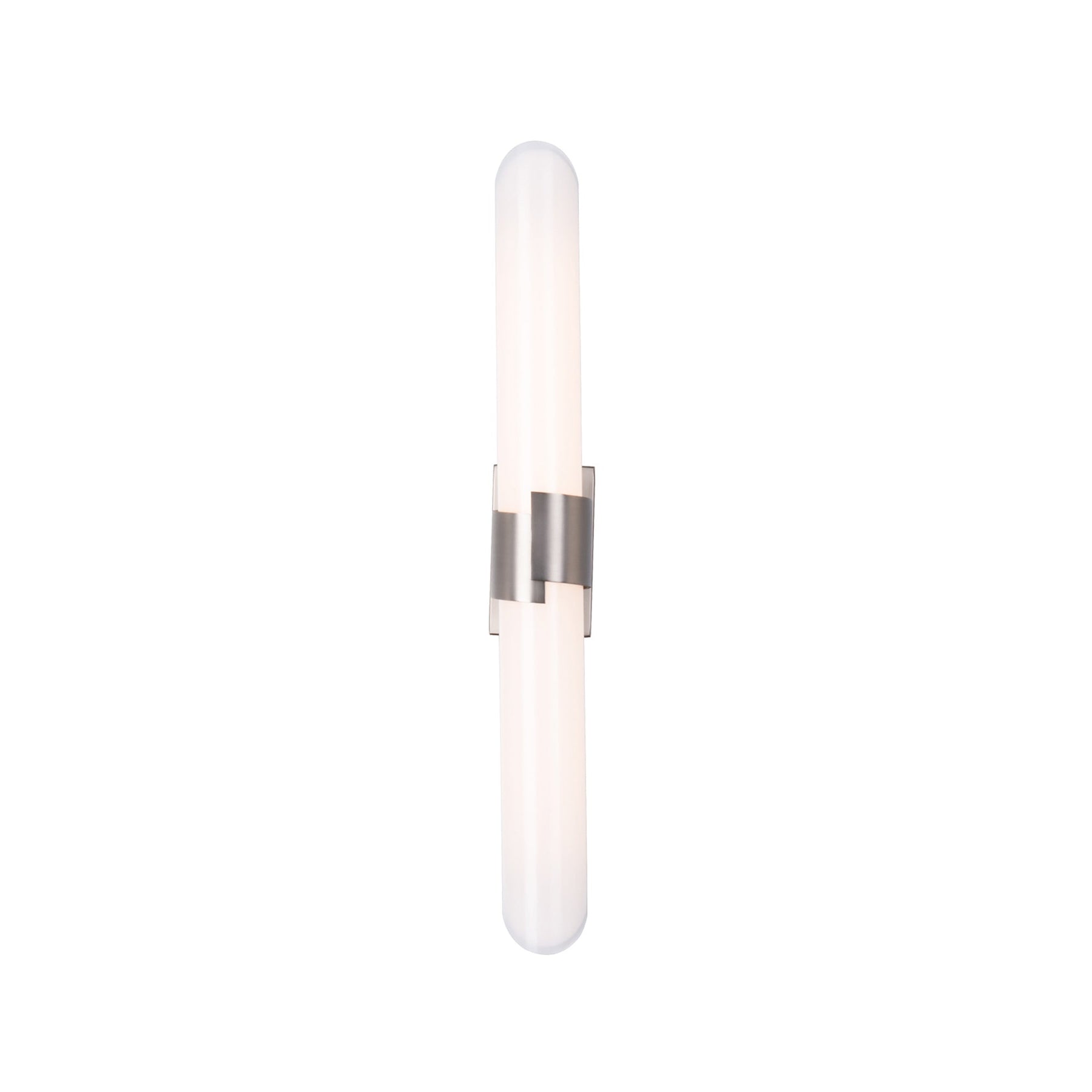 Fallon 22.5in LED Bath Vanity & Wall Light 2700-3000-3500K in Brushed Nickel. A new vanity light for your fine bath. Sleek etched extruded acrylic offering flattering illumination around a mirror in fine powder rooms. Built-in color temperature adjustability provides an opportunity to switch from warm white 2700K, to soft white 3000K, or 3500K bright white. Fallon is offered in brushed nickel and can be positioned horizontally or vertically depending on your preference. This LED luminaire is illuminated using driverless ACLED technology that features a high 90 color rendering index and operates on a 120Volt system. The LEDs have a 50,000 hour rated life and are ETL and cETL listed for damp locations. This LED luminaire is California Title 24 rated for the highest energy efficient requirements today and dims down nicely with an electronic low voltage or TRIAC dimming system. A conversion plate is included to accommodate a 4-inch junction box. Fallon is constructed out of aluminum that wraps around an elongated etched polycarbonate diffuser. Fallon is ADA rated and damp location listed - can be used indoor or covered outdoor areas. Can be mounted up or down to suit any application. AC LED technology - no driver or transformer required. Easily fits on a pancake junction box. Tri-CCT technology features a switch inside the canopy that is accessible during installation and allows you to toggle color temperatures between 2700K Warm - 3000K Warm White - 3500K White to find and set the perfect color temperature for your space. Smooth and continuous dimming with electronic low voltage ELV or TRIAC dimmer options. High Powered Replaceable LED Module CRI: 90, Rated Hours: 54000, Color Temp Adjustability: 2700K-3000K-3500K Standards: ETL & cETL UL 1598 listed with IP44 rating for Damp Locations. CEC Title 24 compliant.