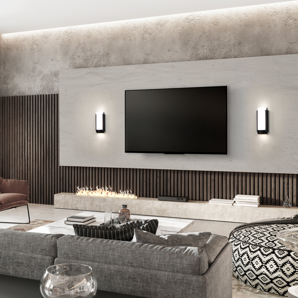 Blake 12in LED Wall Sconce 3500K in Black. Invite Blake into your home. A soulful minimalism shaped with contours and beautiful ambient light. This ADA Compliant LED sconce is available in a black finish and projects downward light and beautiful ambient illumination from an etched opal glass diffuser. Ideal for providing ambient illumination on walls in hallways, dining areas, bedrooms and a multitude of spaces in residential, hospitality and commercial settings. This LED luminaire is powered by driverless ACLEDs that feature a high 90 color rendering index, and operates on a 120 volt system. Order with your desired color temperature and use the built-in color temperature adjustability switch to adjust from warm white 2700K, to soft white 3000K, or bright white 3500K. State of the art LEDs have a 50,000 hour rated life. This LED luminaire is ETL and cETL listed for damp locations and is California Title 24 rated for the highest energy efficient requirements offered today. Dims down beautifully with an electronic low voltage or TRIAC dimming system. Versatile and stately, Blake makes the perfect indoor wall sconce. Features a steel construction with opal glass diffuser that provides both ambient and downward illumination. Blake is ADA rated and damp location listed - can be used indoor or covered outdoor areas. Can be mounted up or down to suit your application. AC LED technology - no driver or transformer required. Easily fits on a pancake junction box. Tri-CCT technology features a switch inside the canopy that is accessible during installation and allows you to toggle color temperatures between 2700K Warm - 3000K Warm White - 3500K White to find and set the perfect color temperature for your space. This fixture is factory pre-set to the CCT ordered and can be modified in the field with the flick of a switch. Smooth and continuous dimming with electronic low voltage (ELV) or TRIAC dimming High Powered Replaceable LED Module CRI: 90, Rated Hours: 50000, Color Temp Adjustability: 2700K-3000K-3500K Standards: ETL & cETL UL 1598 listed with IP44 rating for Damp Locations. CEC Title 24 compliant.