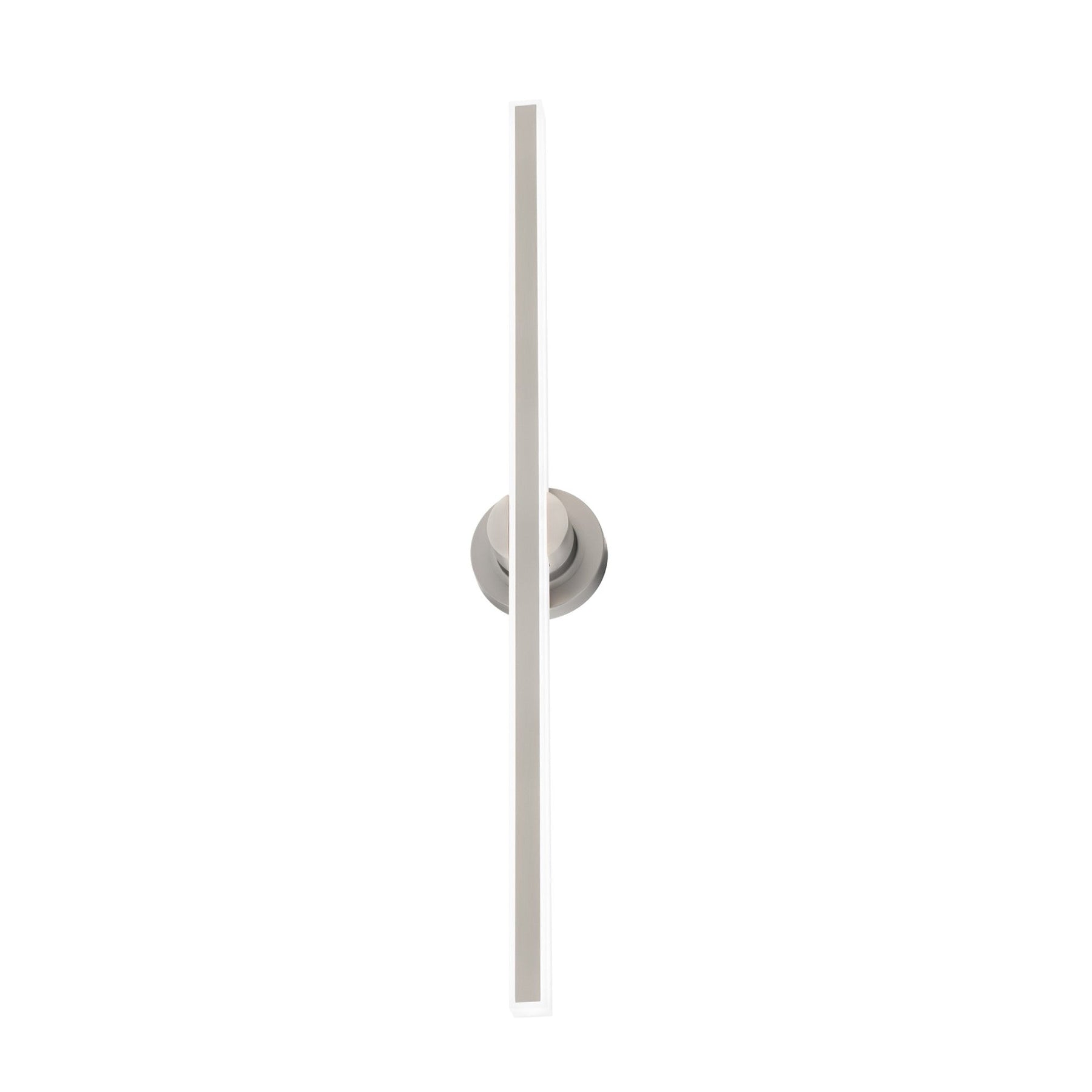 Bastone 36in LED Bath Vanity & Wall Light 3500K in Brushed Nickel. A simple rectangle radiates from LED illumination. This seamless design presents a sharp visual style. Featuring a die cast aluminum body with frosted acrylic diffuser ADA Compliant 120V AC LED Technology - no driver or transformer required. Easily fits on a pancake junction box. 277V or 240V options available by special order. Smooth and continuous dimming with an electronic low voltage (ELV) or TRIAC dimmer. High Powered Replaceable LED with CRI: 90, Rated Hours: 50,000, Color Temp: 2700K-3000K-3500K-4000K Adjustable Standards: ETL & cETL UL 1598 listed for Damp Locations, ADA Compliant