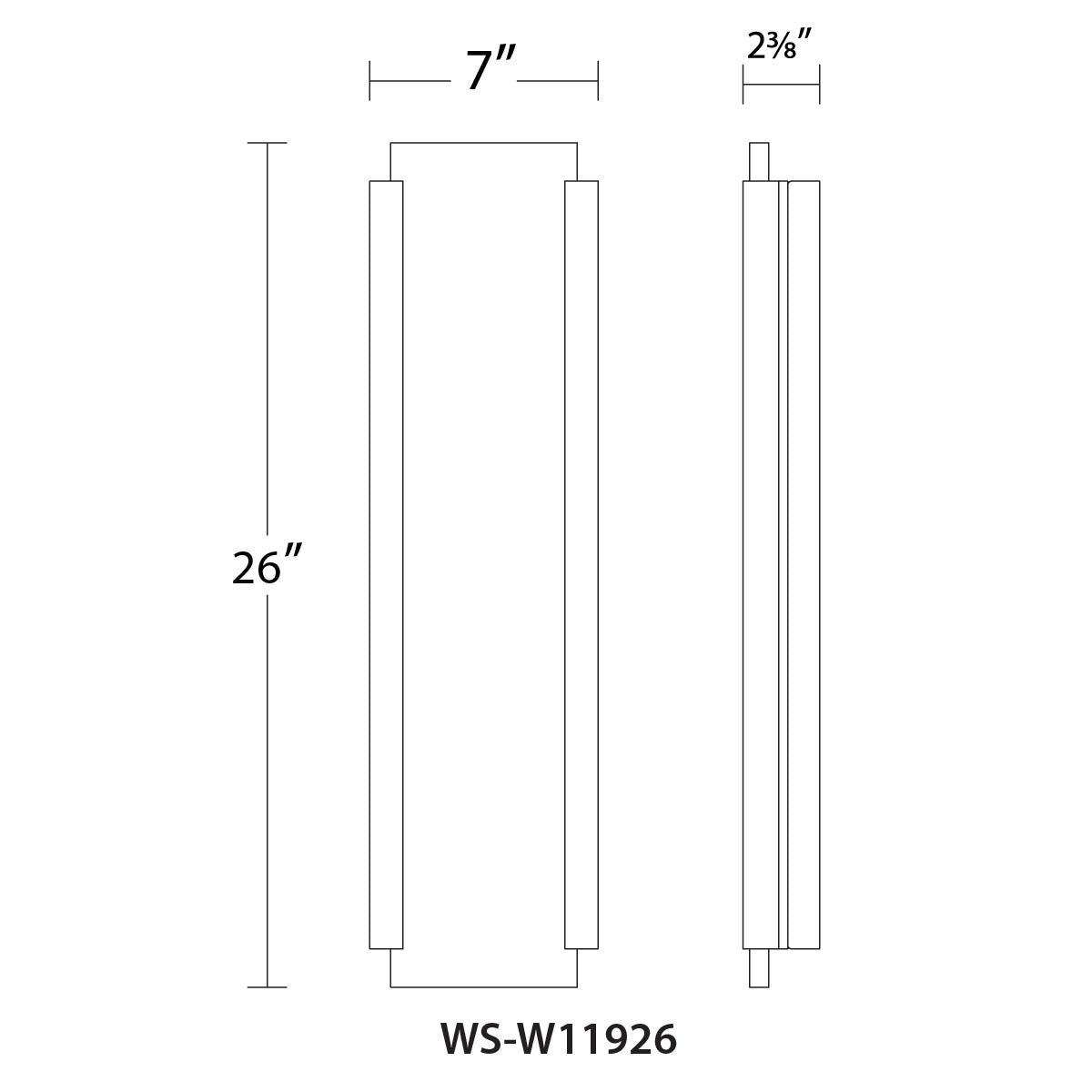 Fiction 26in LED Outdoor Wall Light 3000K in Black. An outdoor LED wall sconce in an iconic design, Fiction is finished in black to suit a variety of modern outdoor settings. Enjoy energy-efficient lighting outdoors with discreetly hidden drivers in this long-lasting luminaire. Easily install this front lit wall sconce. Front lit etched acrylic panel design. Aluminum hardware with acrylic diff user. Driver located within the fixture. Universal Input Voltage Driver (120V-240V-277V). Custom CCT options available by special order. Smooth and continuous dimming with an electronic low voltage (ELV) dimmer. High Powered Replaceable LED Module CRI: 90, Rated Hours: 50,000, Color Temp: 3000K Standards: ETL & cETL UL 1598, IP65 listed for Wet Locations. CEC Title 24 Compliant, and ADA Compliant.