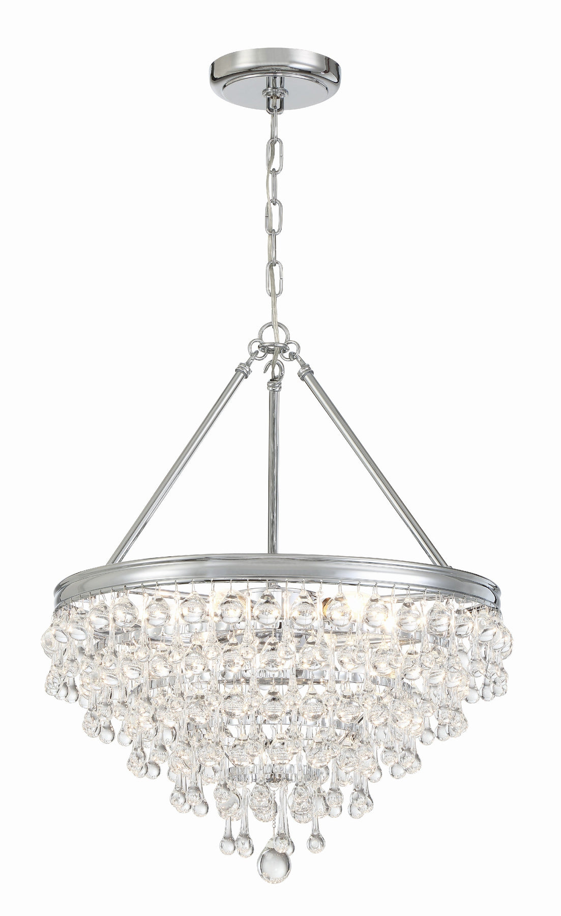 Elegance and glamour will illuminate the room with the Calypso collection. Draped in an abundance of smoothed shaped clear drops and balls, this contemporary collection is a perfect statement to a living room, dining room, bathroom, or entry.