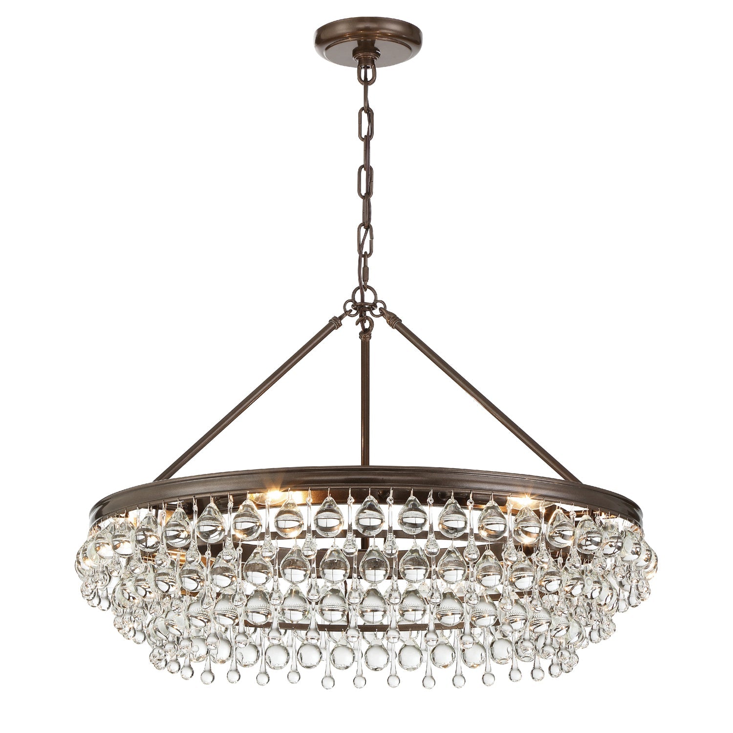Elegance and glamour will illuminate the room with the Calypso collection. Draped in an abundance of smoothed shaped clear drops and balls, this contemporary collection is a perfect statement to a living room, dining room, bathroom, or entry.