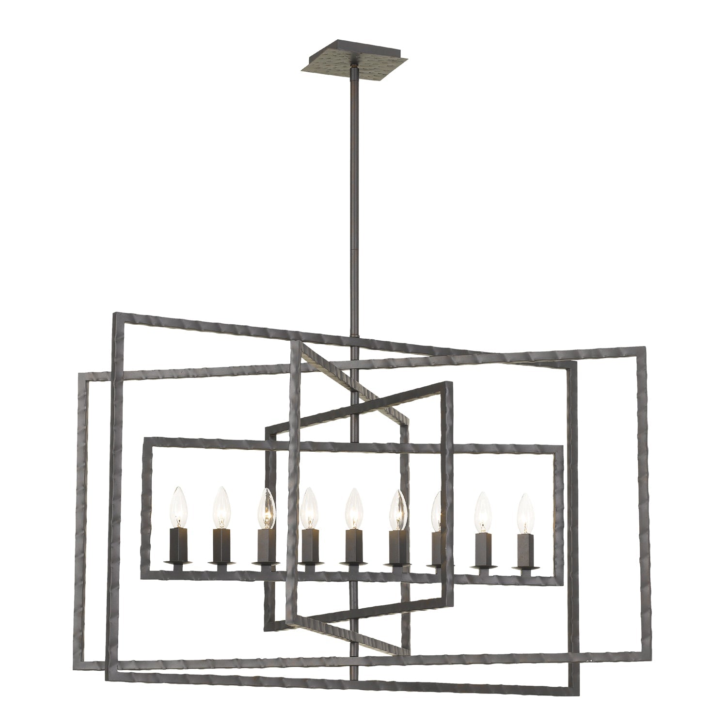 A conversation piece, the Capri chandelier's geometric design, gives the fixture an architectural feel. Designed with hammered rectangle adjustable geometric rings, the Capri can be rearranged to suit your needs.