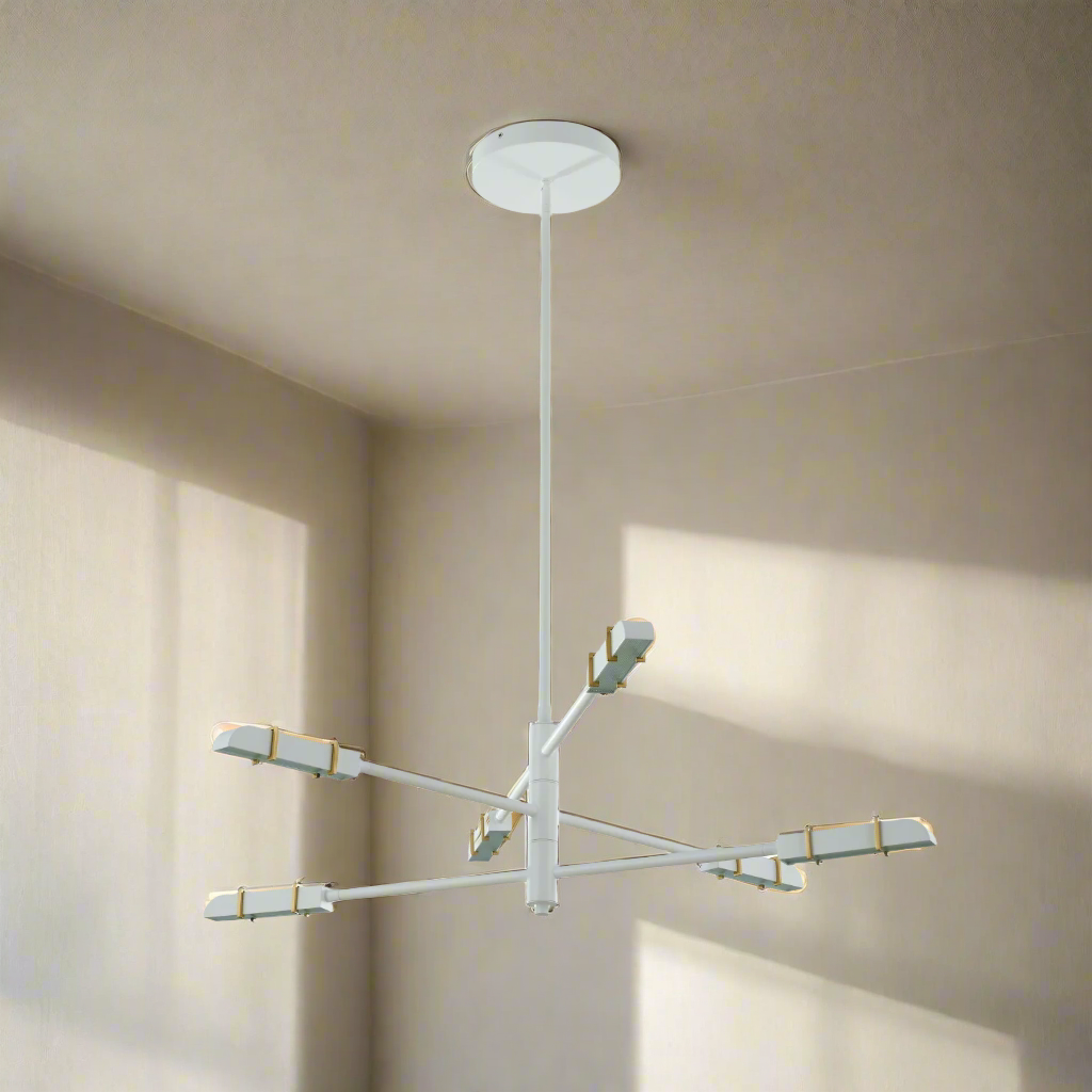The Concorde 6 Light LED Chandelier is a stunning addition to any modern décor, beautifully combining functionality and style. This chandelier features a chic satin brass and matte white finish, creating a striking visual appeal. Measuring 32 inches in width and 19 inches in height, it is designed to provide ample illumination with integrated LED technology, delivering 15 watts of power at a warm 3000K, 90 CRI, and 1230 lumens. The fixture includes a dimmable function, allowing for customization of brightness to suit your mood. It is constructed from durable steel and glass, ensuring longevity and safety with a DRY safety rating. Perfect for both residential and commercial spaces, the Concorde chandelier requires partial assembly and includes bulbs with a 96-inch wire length, showcasing a modern mid-century design that is sure to be a conversation starter.
