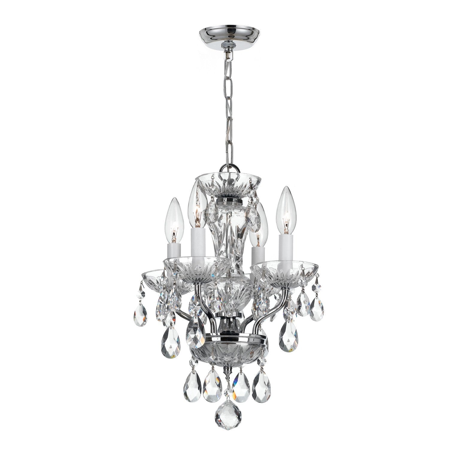 Traditional Crystal 4 Light Swarovski Strass Crystal Polished Chrome Mini Chandelier
