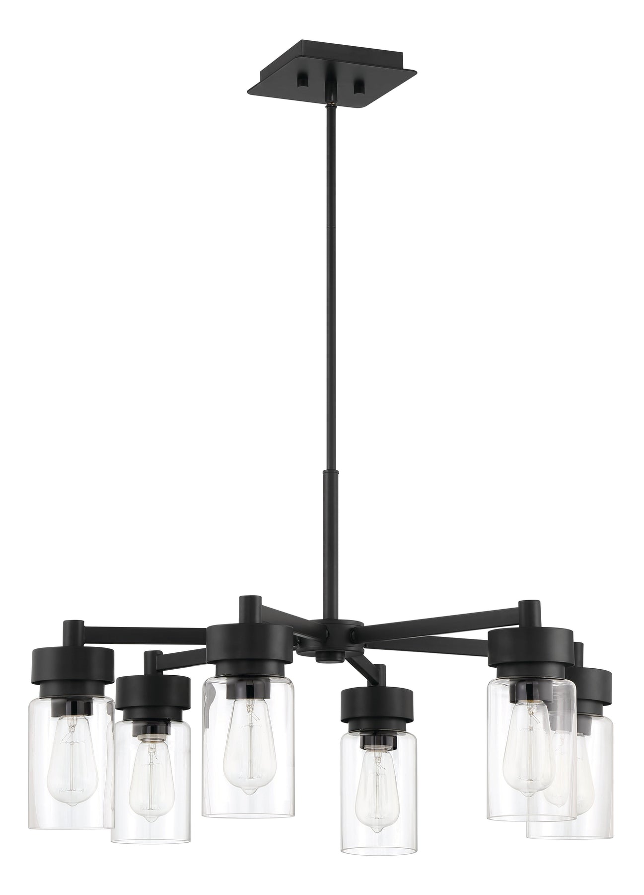 The Bennet 6 Light Outdoor Chandelier in Midnight is a perfect blend of durability and elegance, ideal for enhancing your outdoor spaces. This striking chandelier features clear glass globes that beautifully showcase 6 medium base bulbs, requiring a maximum wattage of 60W each (not included). With dimensions of 28 inches in width and depth, and a height of 16.88 inches, it is designed for easy installation using downrods (two 12-inch and two 6-inch included). Rated for damp locations, it's an excellent choice for covered patios or porches, ensuring a stylish yet functional lighting solution.