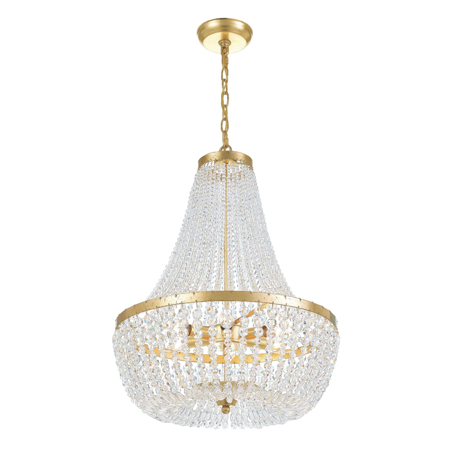 A traditional Empire shape meets modern elements in Crystorama's Rylee Collection. A circular-shaped hand-painted frame gives this fixture a vintage, distressed look, while the beads lend to a bohemian style flare. The Rylee creates a rich visual impact on any space in a perfect combination of texture and materials.