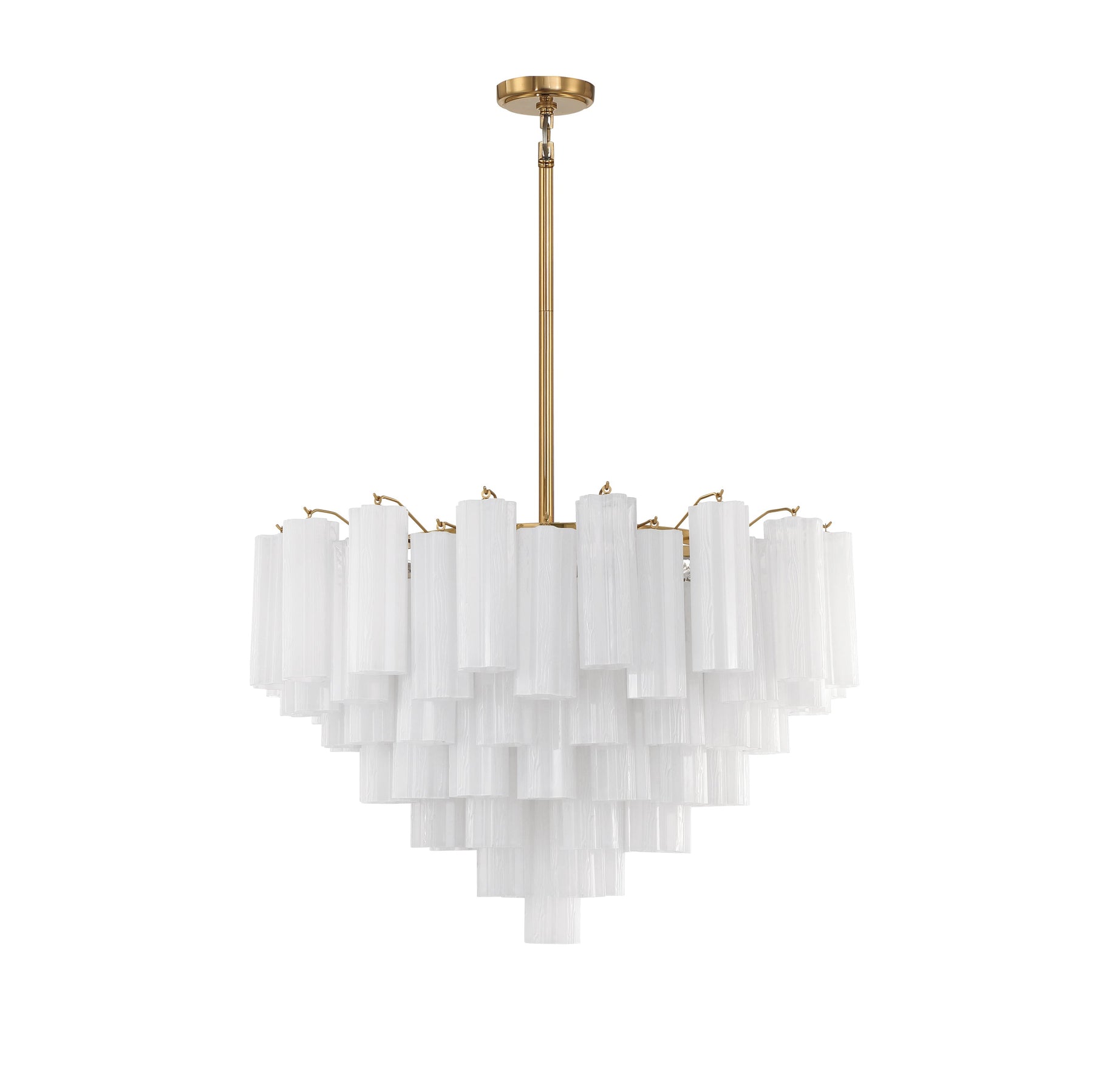 The captivating Addis Lighting Collection is a modern-day interpretation of the iconic mid-century Tronchi chandelier. Inspired by its predecessor's sleek lines and geometric shapes, the Addis features a polished Chrome or Aged Brass metal frame that exudes sophistication and style. Its unique design showcases transparent tiers of textured Tronchi glass tubes, forming a mesmerizing 5-point rounded star shape. Choose from a range of glass colors, including clear, amber, smoke, and white, or the stunning Autumn option, which features a captivating multicolor disposition of amber, clear, and smoke Tronchi glass. The Addis Lighting Collection offers various sizes and finishes, allowing you to find the perfect fit for your space while adding a touch of timeless elegance.