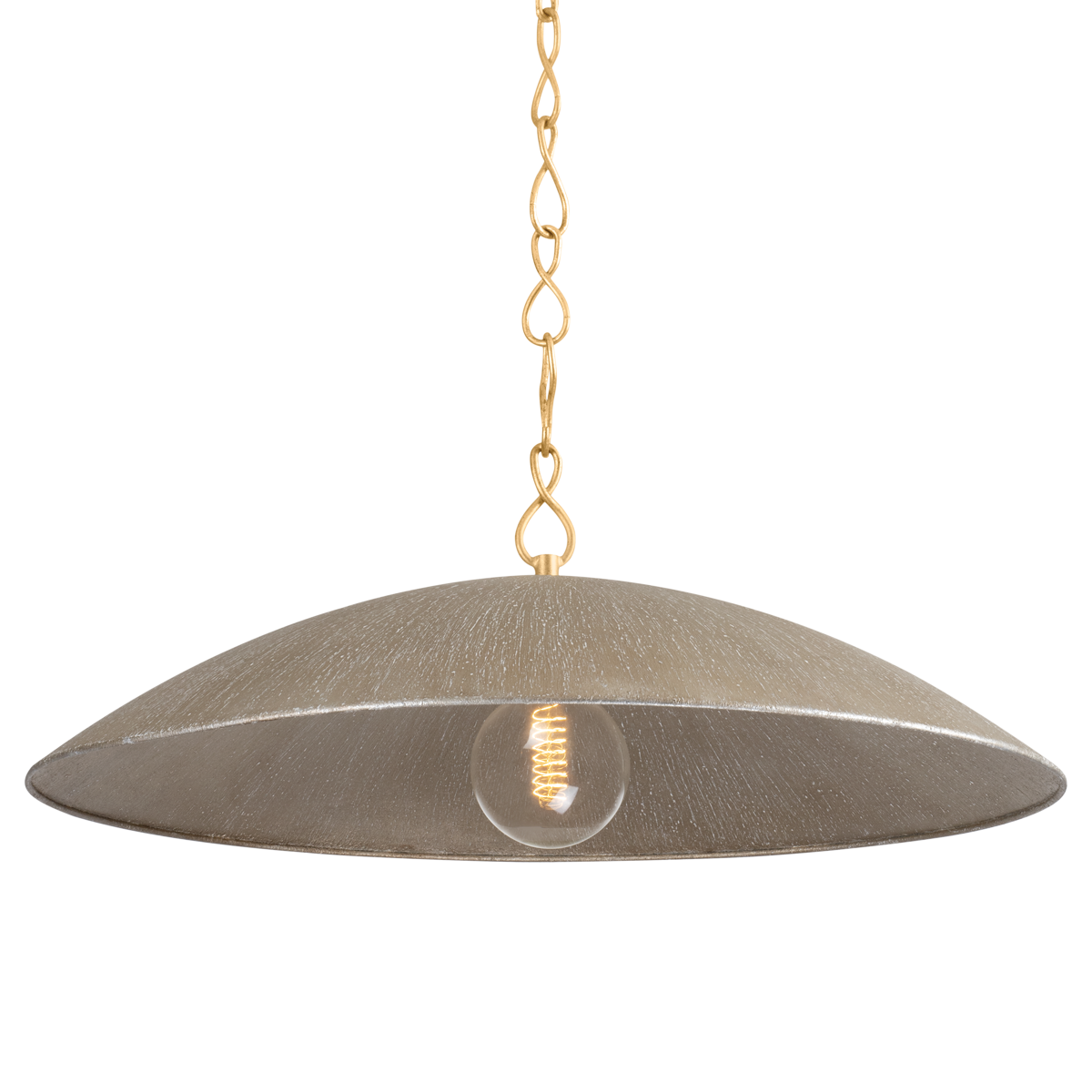 The Hudson Valley Lighting EVE fixture in Vintage Gold Leaf and Textured Warm Silver Leaf is a stunning addition to any space, combining elegance and functionality. It features a single E26 medium base socket and requires a G40 bulb (not included) with a maximum wattage of 25W. The fixture has a generous diameter of 32.00 inches and a height of 12.75 inches, making it a striking focal point. Designed for UL Damp locations, this versatile fixture is perfect for areas exposed to moisture, ensuring both beauty and durability.