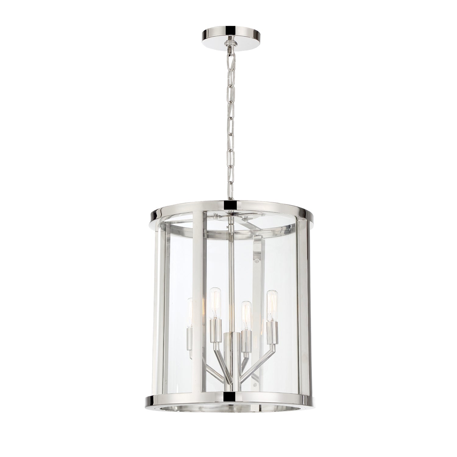 The Devon collection, designed by Libby Langdon, is a study in simple elegance with its clean lines and sleek polished nickel frame. With a variety of sizes, it can work in a myriad of different design styles. Circular at the top and bottom, its intersecting vertical frame sections showcase the fixture's height. The clear glass panels give the perfect peek at the inner angular arms, and the polished nickel finish of the candelabra arms give it a modern twist. Sometimes, a room's design requires a straightforward light fixture, but it can still be striking and become an integral part of the space. The Devon lighting collection offers a livable look that is chic, stylish and understated in just the right way.