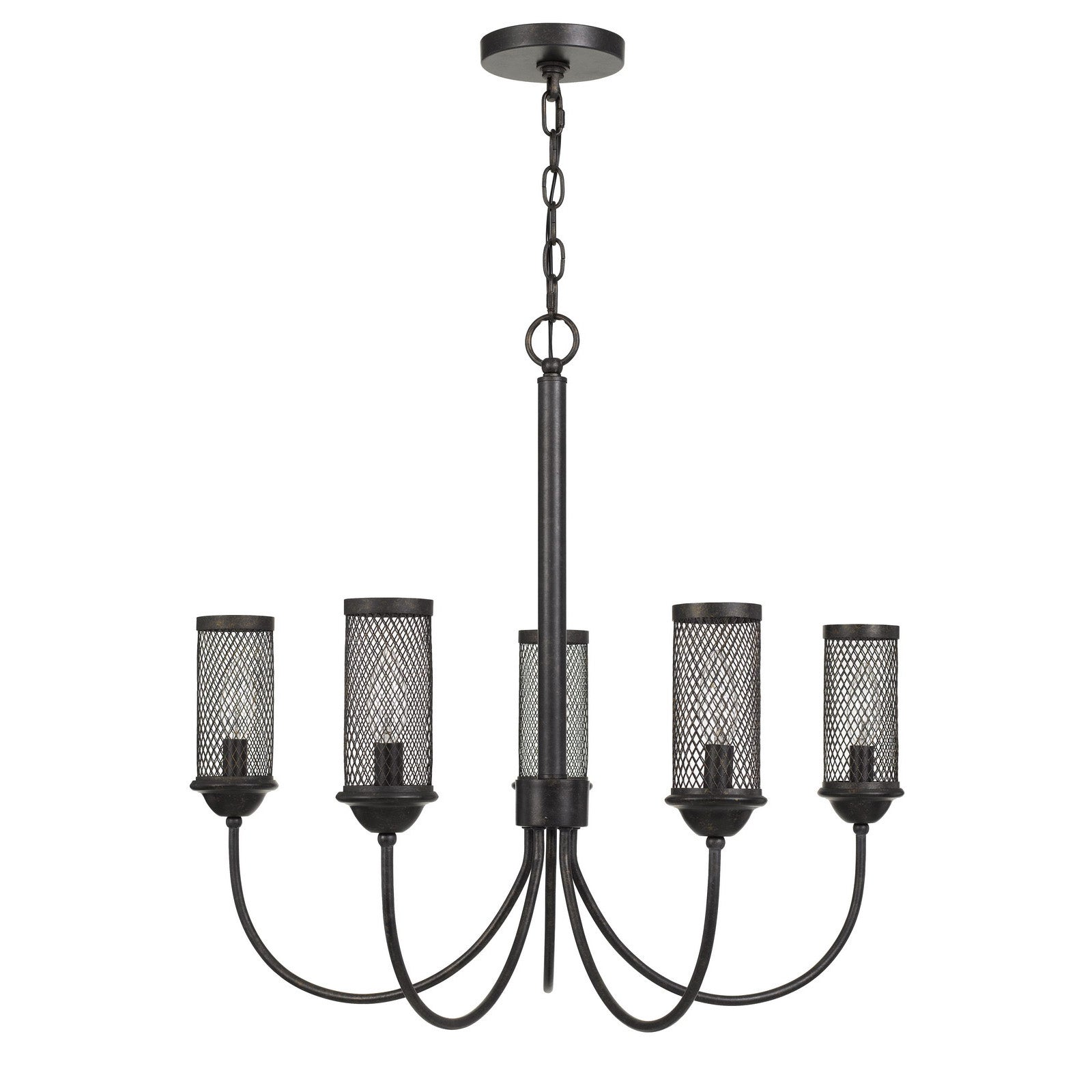 The Fulton Metal Chandelier with Mesh Metal Shade is a stunning addition to any modern space, combining durability with an elegant design. This chandelier is made of robust metal construction and features a textured bronze finish, providing a warm ambiance. It stands 24 inches tall and includes a 5.13-inch diameter canopy, a 6-foot metal chain, and a 10-foot cord for versatile installation options. Designed to hold five bulbs (E12 base, max wattage 60W each), it delivers ample lighting for various settings. Minor assembly is required, and it typically ships within 3 business days, backed by a one-year warranty for peace of mind.