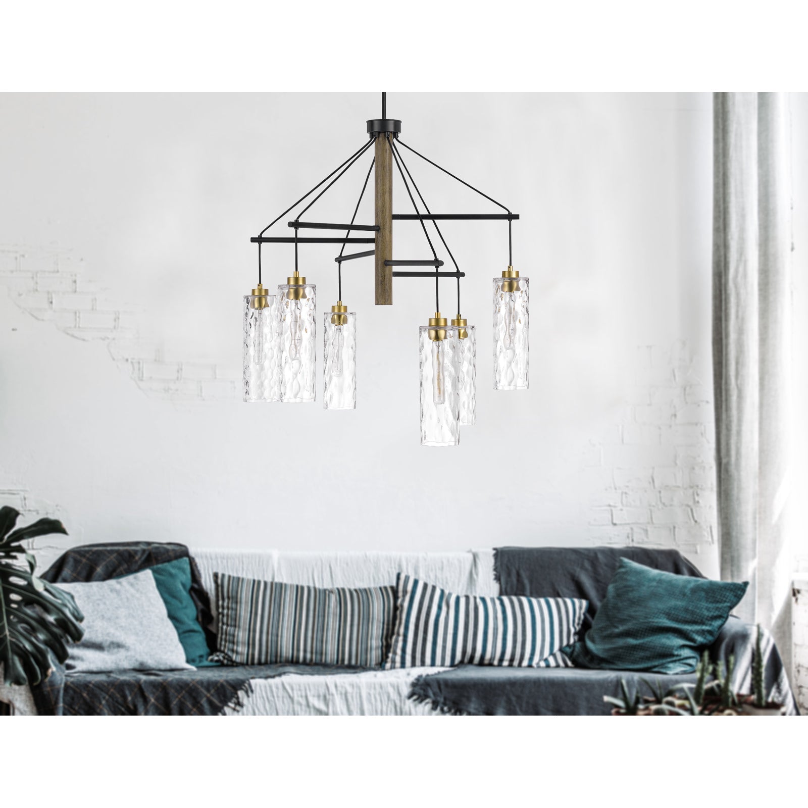 The FX-3788-6 Williston chandelier is a stunning and functional lighting fixture that enhances any home decor. With its robust durable metal and wood construction, it features a total of six clear textured glass shades, providing an inviting glow. The chandelier offers a maximum wattage of 60W per bulb, uses an E26 bulb base, and requires assembly. This modern piece comes with a six-foot adjustable chain and a canopy for easy installation and can be shipped in one carton. Additionally, it includes a one-year warranty against defects, allowing you to refresh your space with confidence.