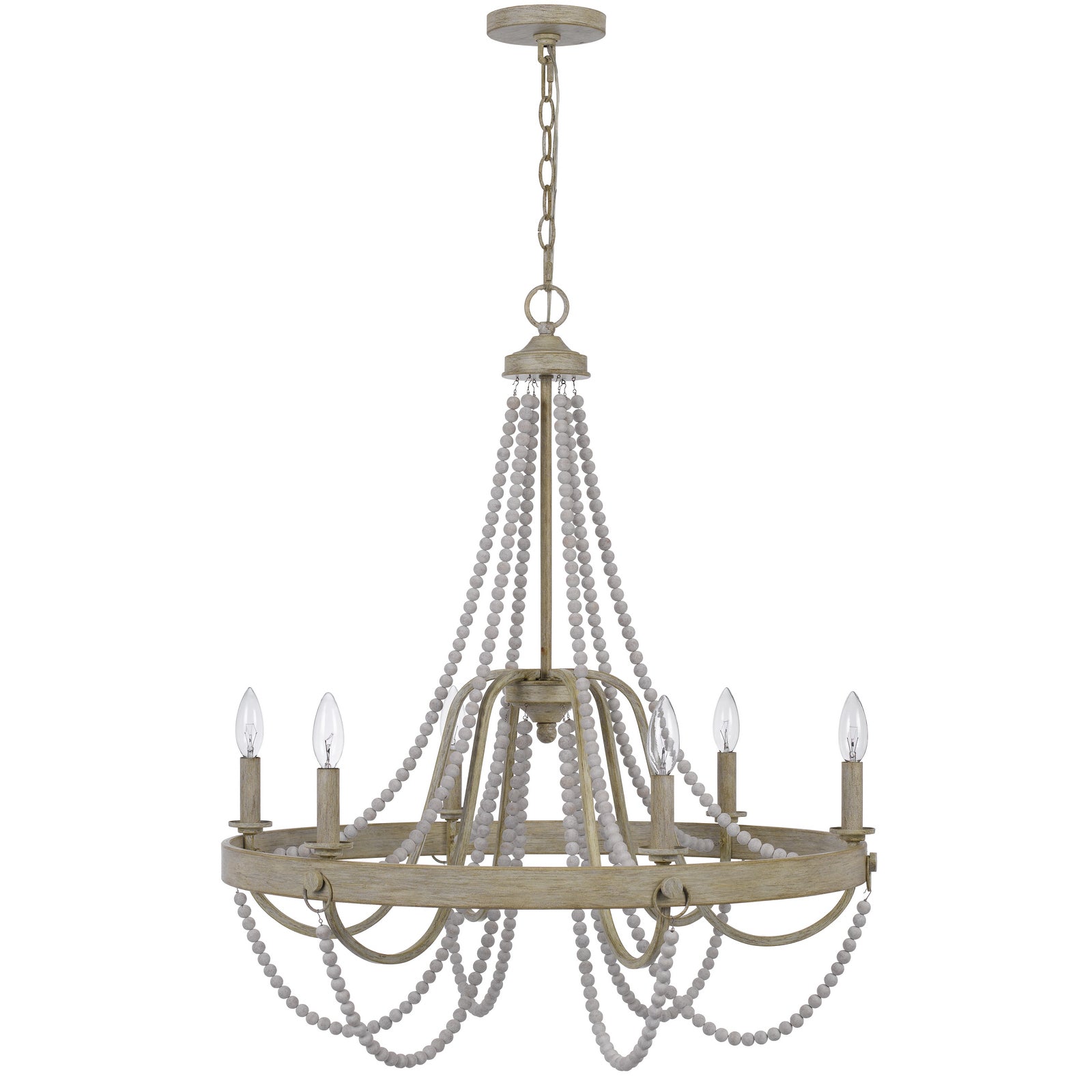 The FX-3790-6 Macon Beaded Metal Chandelier is a stunning addition to any French country-inspired decor. This chandelier boasts a durable metal construction with a traditional candelabra design, featuring six lights that each accommodate an E12 base bulb with a maximum wattage of 60W. The white wash beaded accents and light brown wood frame enhance its charm, while the distressed finish adds character. Measuring 30.80 inches in length, 12.50 inches in width, and 30.30 inches in height, this chandelier includes a canopy and a 6-foot chain for versatile hanging options. Assembly is required, and it comes with a one-year warranty, ensuring its quality and longevity.
