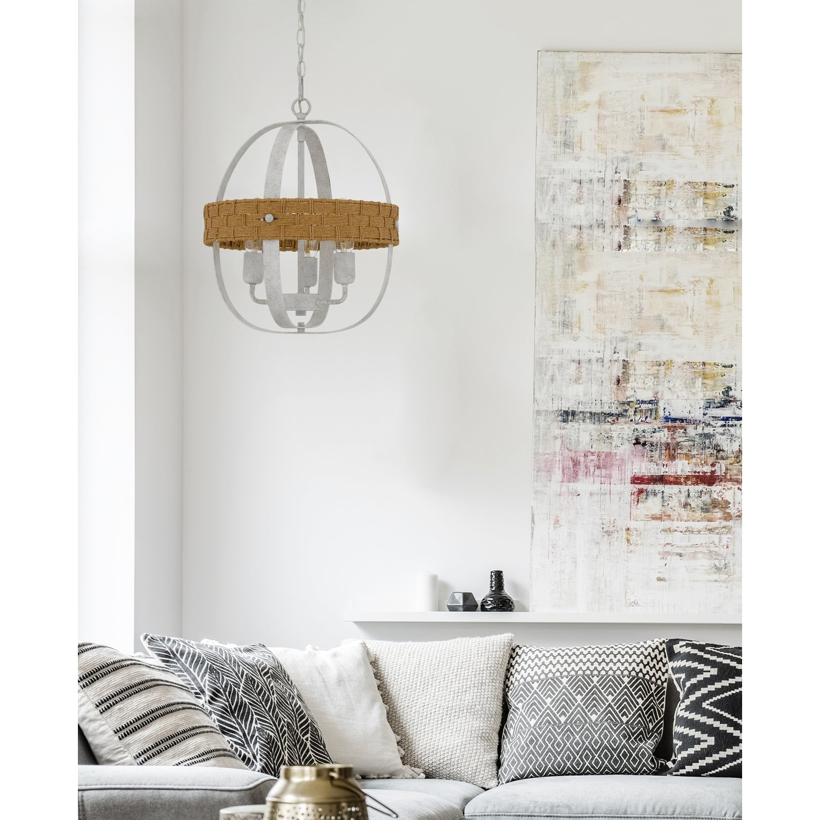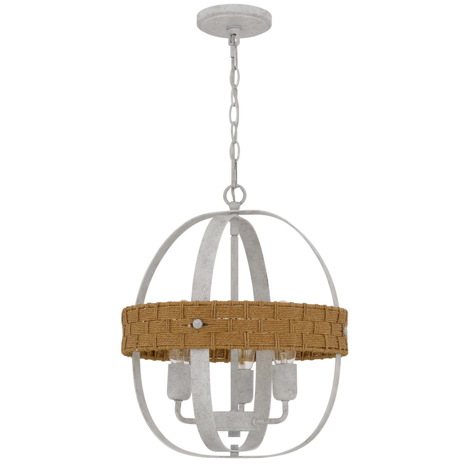 The FX-3816-3 Barton metal chandelier is an exquisite lighting fixture designed to enhance the ambiance of any kitchen, living room, or dining room. With a durable metal construction, this chandelier features a striking white washed finish complemented by rattan accents. It accommodates three E26 base bulbs with a maximum wattage of 60W each, ensuring ample illumination. The package includes a matching canopy and a generous 72-inch chain for easy installation. Measuring 17.00 inches in length, 11.50 inches in width, and 19.50 inches in height, this stunning chandelier is not only a focal point of decor but is also backed by a one-year warranty. Assembly is required, and it usually ships within three business days.