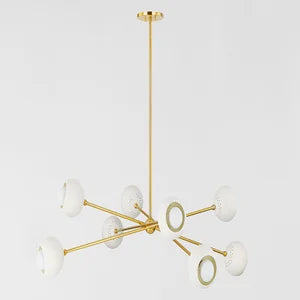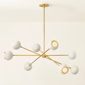 The Saylor chandelier by Mitzi is a stunning lighting fixture that elevates any space with its elegant design. It features a generous diameter of 53.75 inches and a height of 26 inches, making it a captivating centerpiece. This chandelier accommodates eight E26 medium base bulbs (not included), with a recommended bulb type of G25 and a maximum wattage of 15W each. Finished in a beautiful aged brass and soft cream combination, it is not only stylish but also versatile, fitting seamlessly into various decor styles. Additionally, it is UL Damp rated, making it suitable for use in areas with moisture.