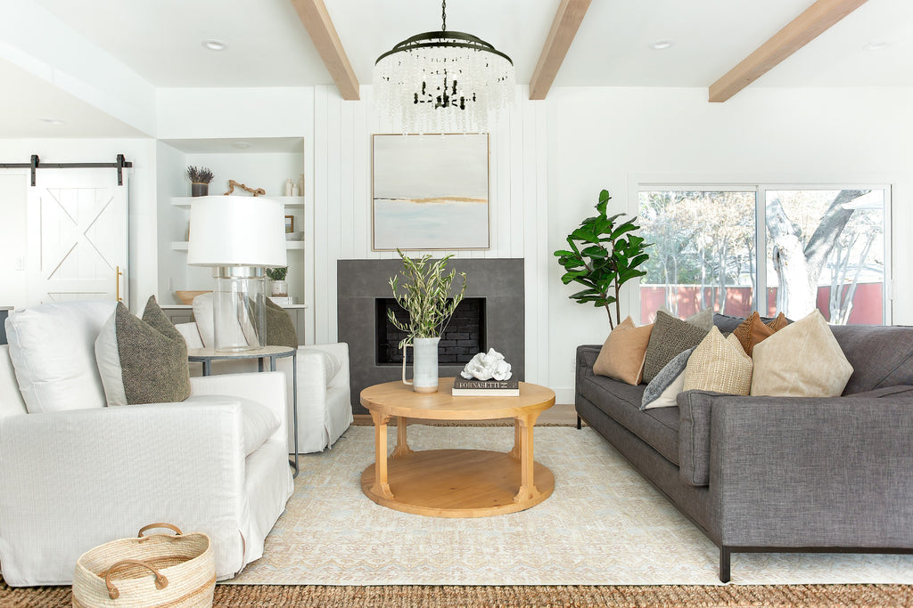 In a perfect combination of texture and materials, the Poppy chandelier's cascading in frosted glass or wooden beads create a rich visual impact on an interior. Whether the look is rustic, boho, or has a coastal vibe, this light is as versatile as stylish.