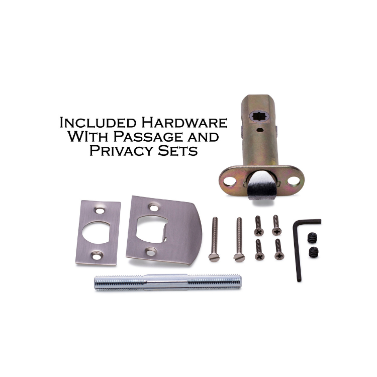 The Passage and Privacy sets each come complete with interconnected rosettes and all necessary hardware for convenient installation of doorknob sets. For decorative purposes, our Single and Double Dummy sets feature surface-mounted rosettes. The standard backset provided is 2 3/8 inches, with the option to substitute it with a 2 3/4 inch backset at no additional if requested at time of purchase.