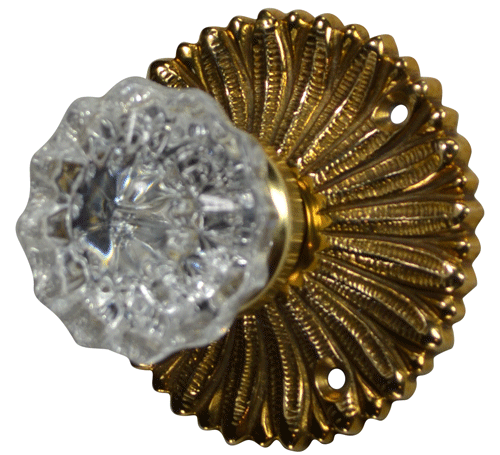 French Provincial Rosette Door Set with Crystal Fluted Door Knobs (Several Finishes Available)