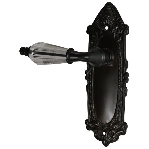 Antique Glass Door Lever Set with Ornate Victorian Plate