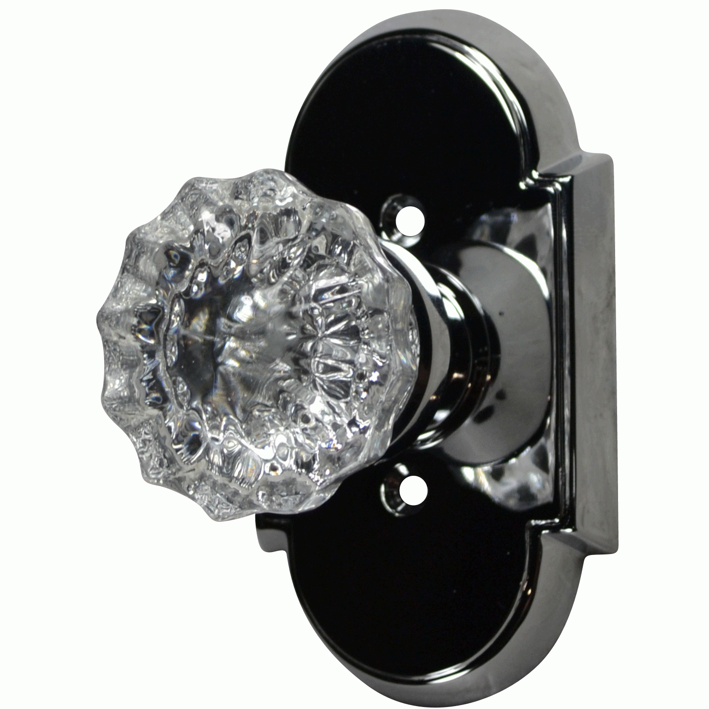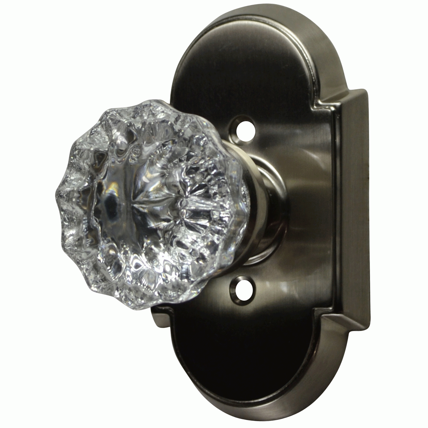 1900s Style Regency Fluted Glass Solid Brass Door Knob Set With Arched Rosette