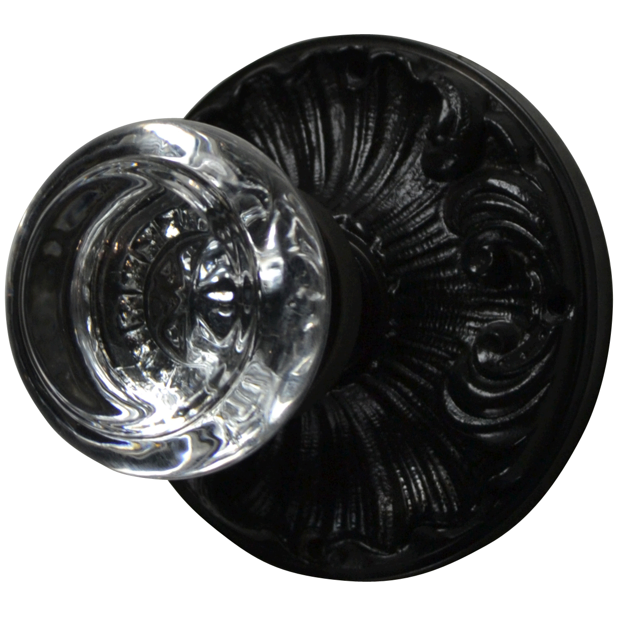 Romanesque Rosette Door Knob Set with Round Crystal Door Knobs (Several Finishes Available)
