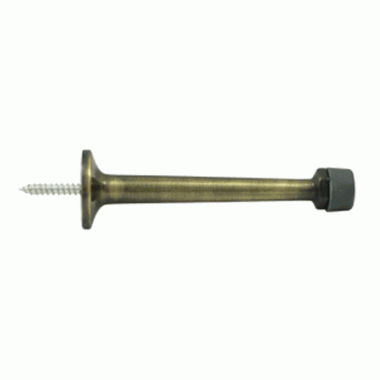 4 Inch Solid Brass Baseboard Door Bumper (Antique Brass Finish) - measures 4 inches long and comes with 2 rubber tips. This style of door stop provides protection for the door by preventing it from banging against a wall causing damage to drywall or plaster and paint. This door stop is available in many designer finishes and comes complete with the mounting hardware.
