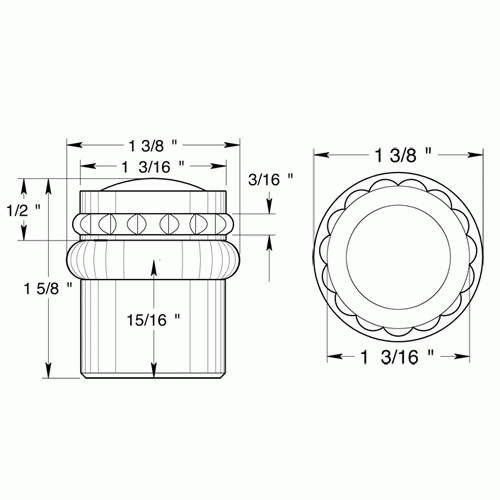 Floor Mounted Bumper in Solid Brass - a solid brass universal round shape modern floor mounted bumper (Antique Brass Finish) - this measures 1 1/2 inch tall and 1 3/16 inch in diameter (the rubber extends the diameter to 1 3/8 inch). It also comes complete with the mounting screws.