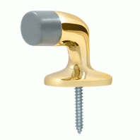Floor Mounted Bumper - a solid brass universal modern floor mounted bumper (Polished Brass Finish) - this measures 1 3/8 inch tall and 1 1/4 inch in diameter. It also comes complete with the mounting screws. This style of door stop provides protection for the door by preventing it from banging against a wall causing damage to drywall or plaster and paint. This door stop is available in many designer finishes and comes complete with the mounting hardware.