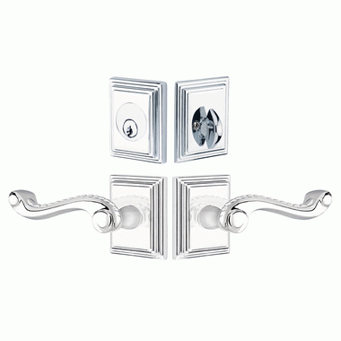 - Emtek Solid Brass Rope Door Lever Deadbolt with Wilshire Rosette (Polished Chrome Finish)