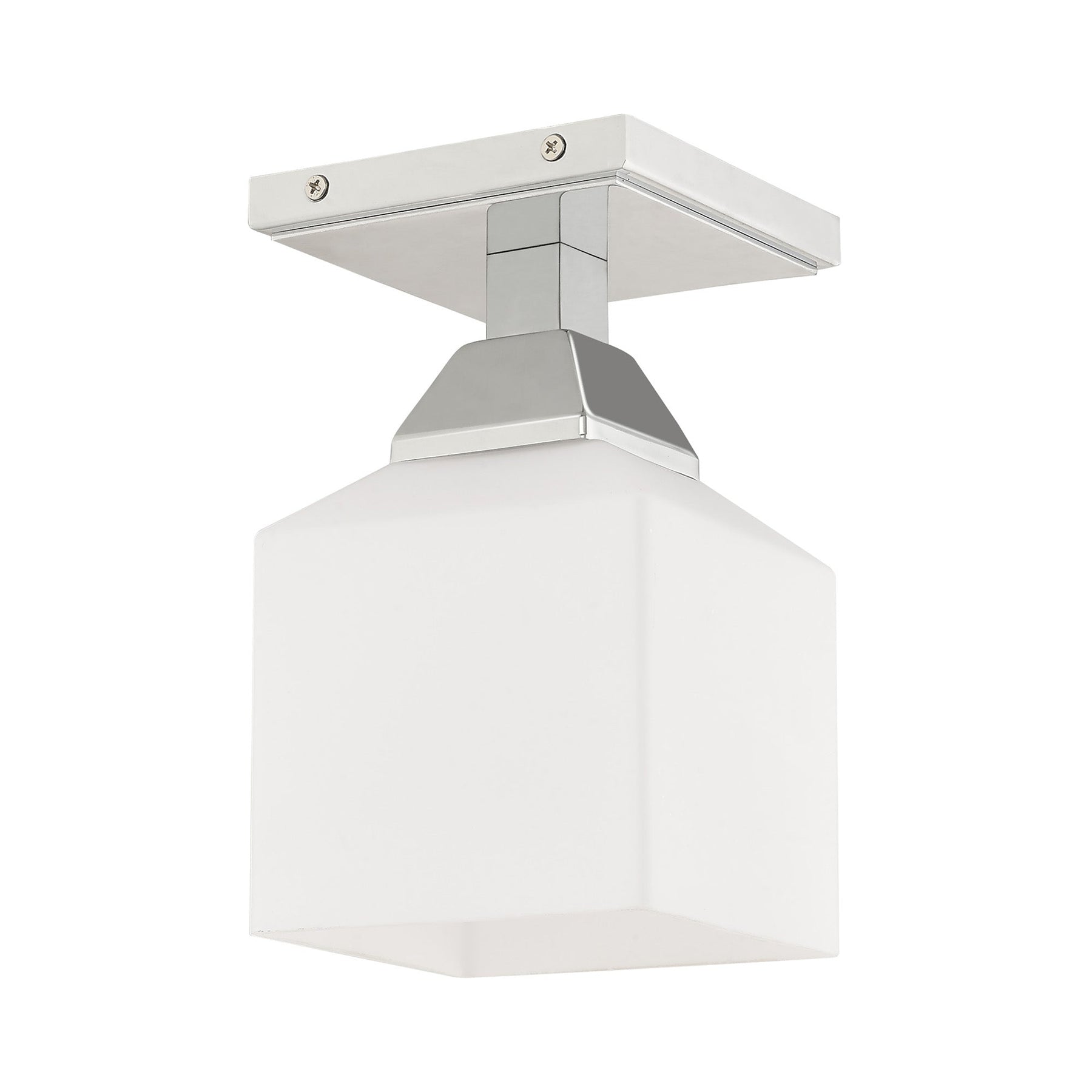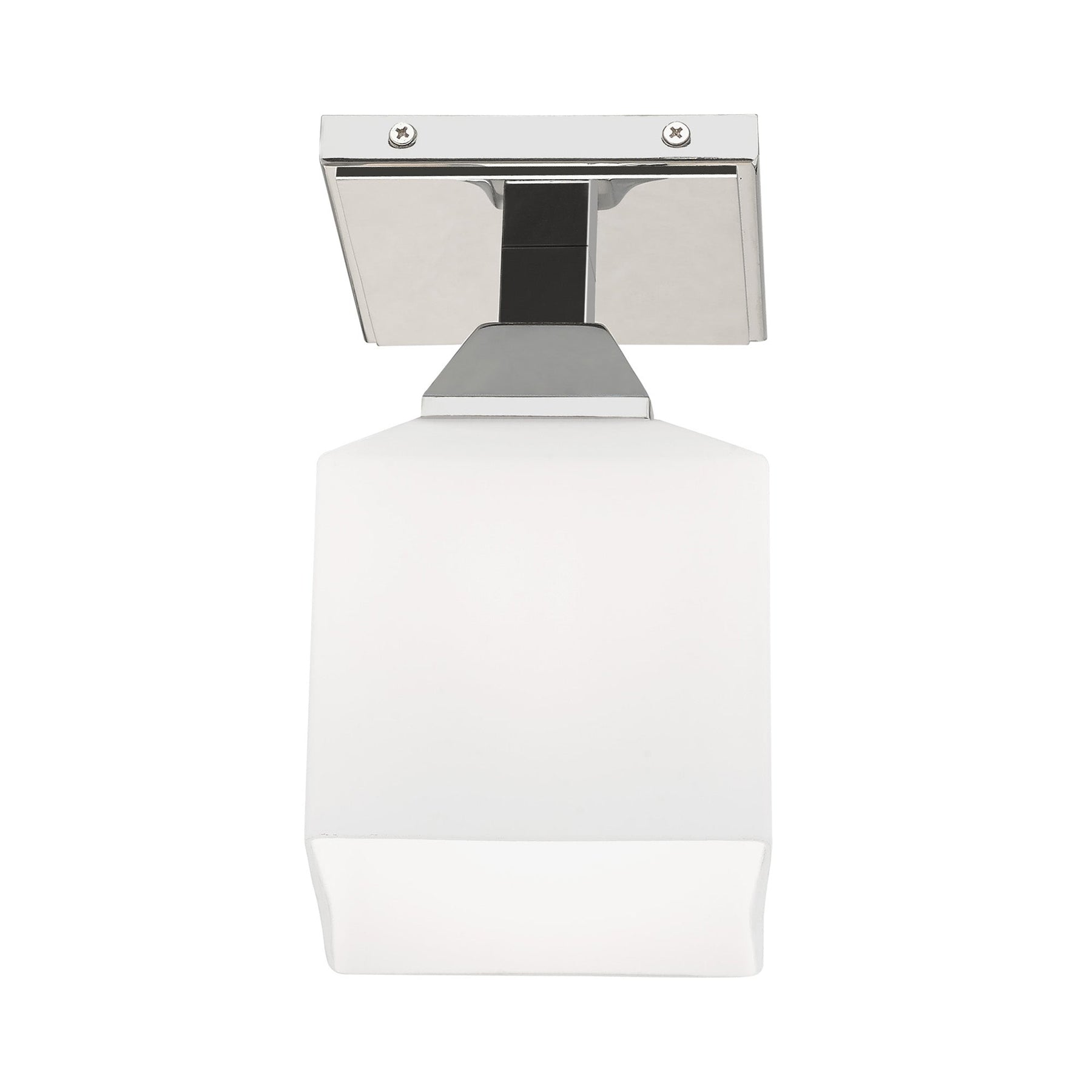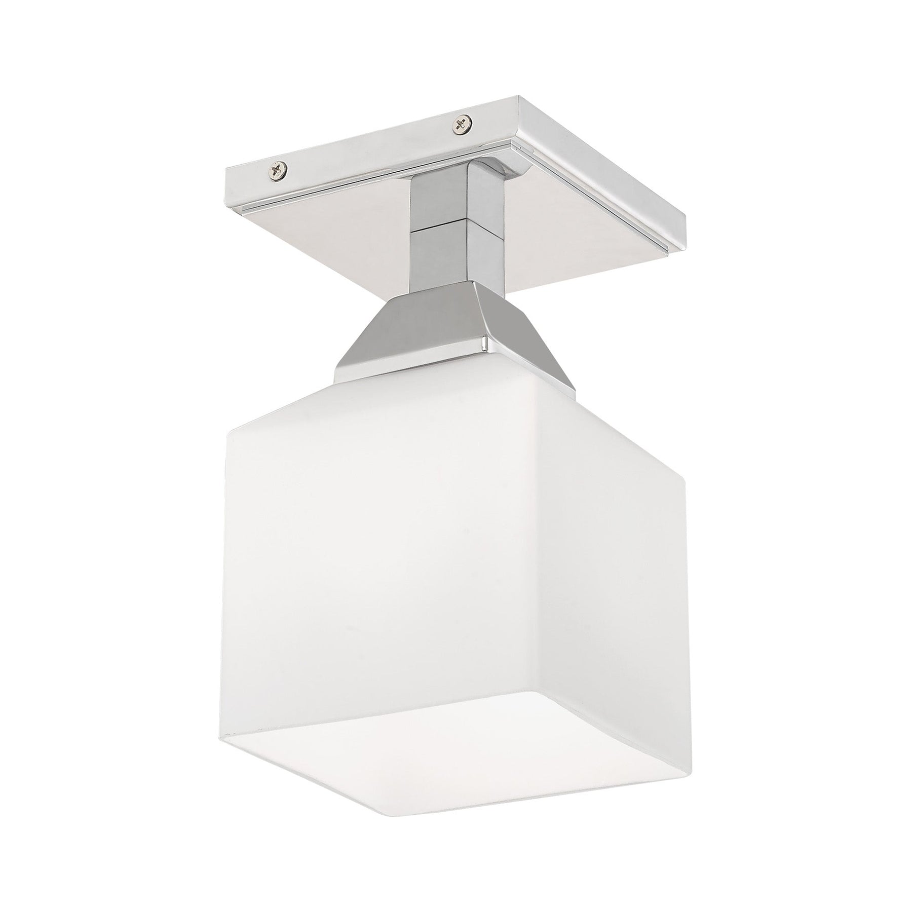 The Aragon Ceiling Mount Light in Polished Chrome combines style with functionality, designed for those seeking a contemporary transition in lighting. This fixture features a hand-blown satin opal white glass shade that elegantly showcases the exposed bulb, supporting a medium base bulb with a maximum wattage of 100W. Measuring 4.75 inches in length and width, and 8.25 inches in height, it is suitable for damp locations, making it ideal for various environments.