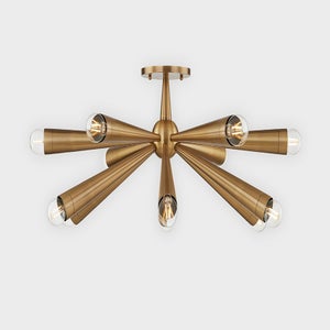 The Keanu chandelier by Troy Lighting is a stunning addition to any space, offering both elegance and functionality. This chandelier features twelve lamps, each requiring an E12 candelabra base bulb (not included) with a maximum wattage of 8W, ensuring adequate illumination. It measures 30.25 inches in diameter and stands at 11.75 inches in height, making it a striking focal point. Finished in Patina Brass, this chandelier not only enhances your décor but is also UL Damp rated, making it suitable for various environments, including those with higher humidity.