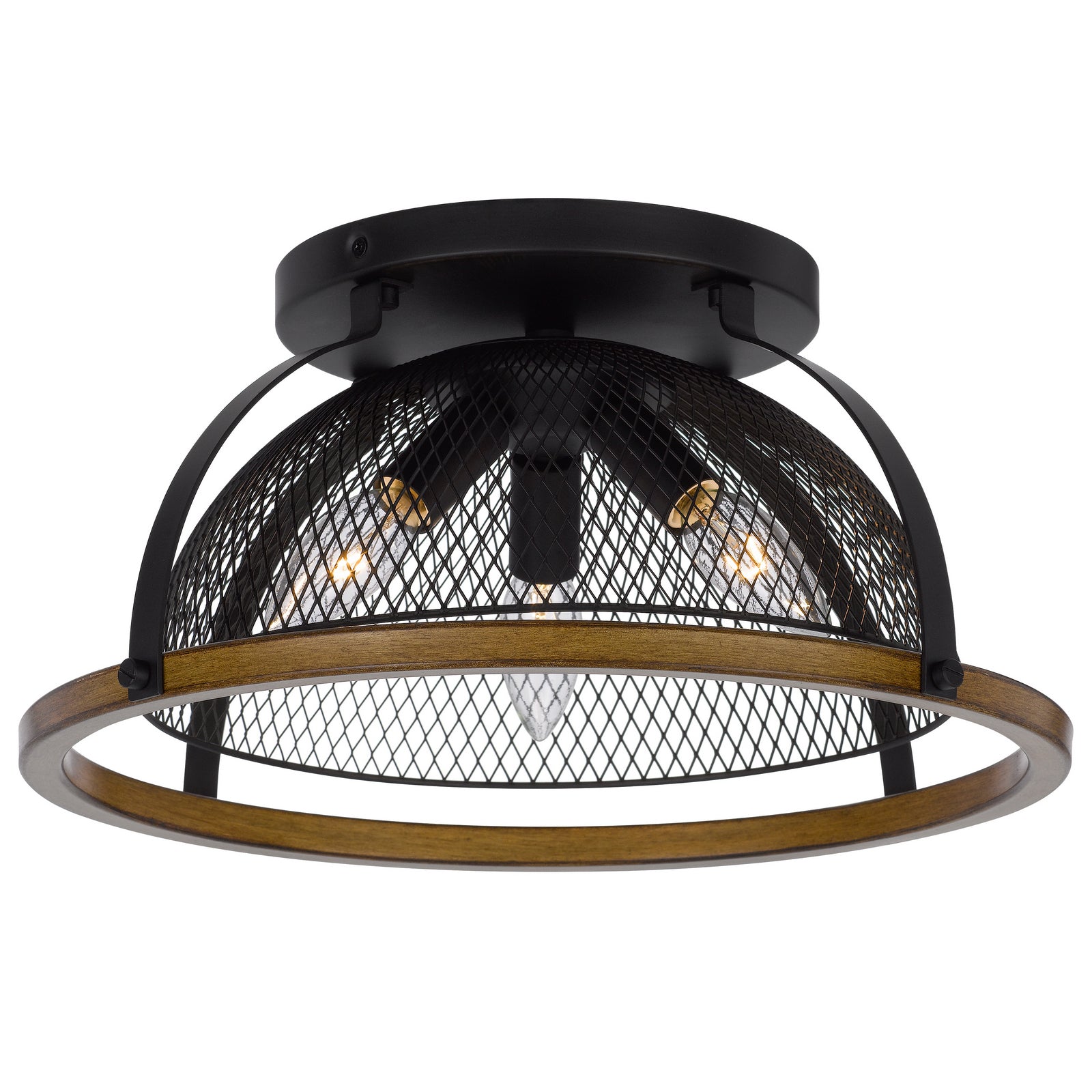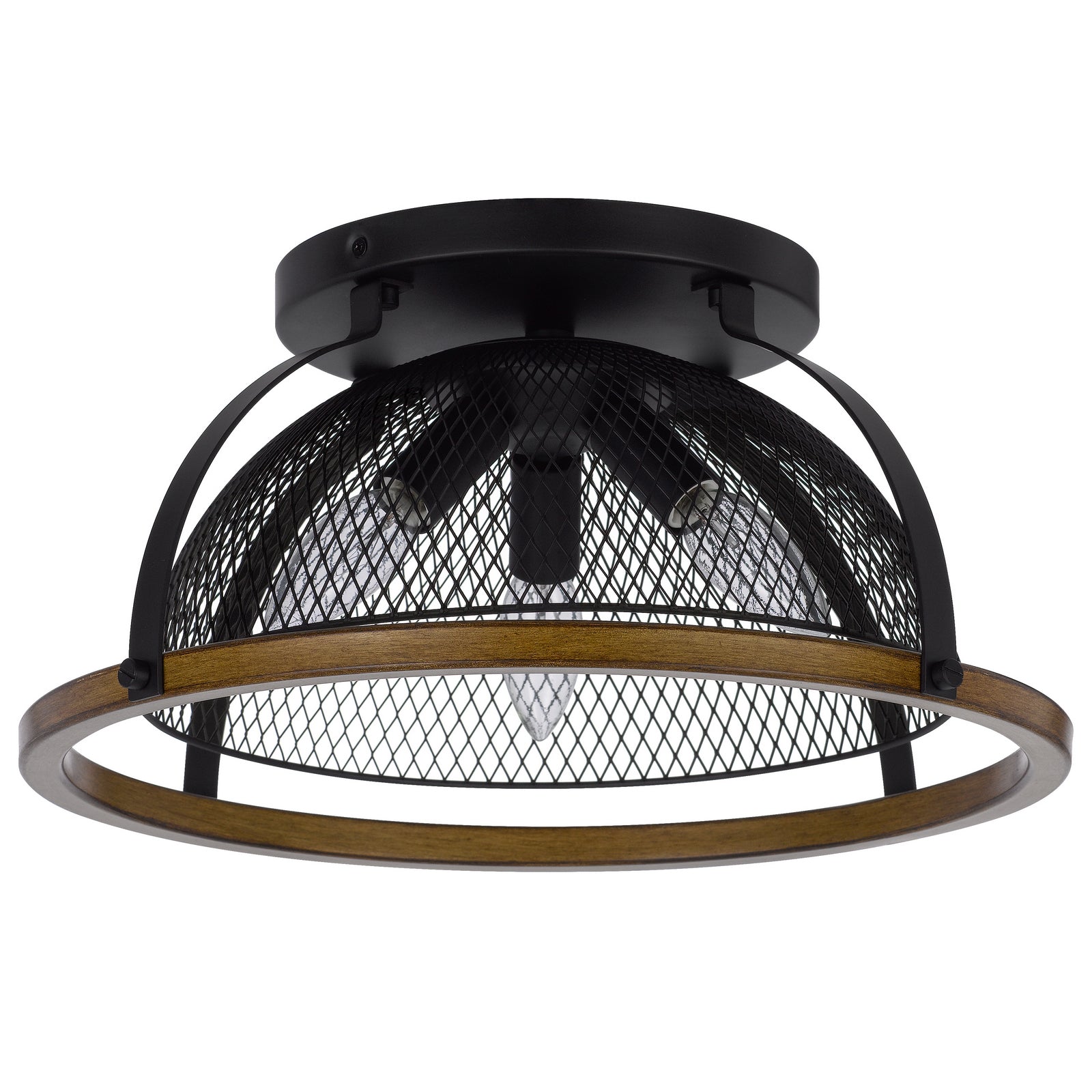 The FX-3799-3 Longmont metal semi flush mount fixture is a contemporary lighting solution designed to elevate your home decor. This stylish fixture features durable metal construction and a half dome mesh shade, complemented by a wooden outer frame in a sleek satin finish. It accommodates three E12 base bulbs with a maximum wattage of 60W each, providing ample illumination for various settings. With dimensions of 17.80 inches in length and width and a height of 10.00 inches, this hardwired application fixture is perfect for adding a modern touch to any room. Assembly is required, and Cal lighting offers a one-year warranty, ensuring confidence in your purchase.